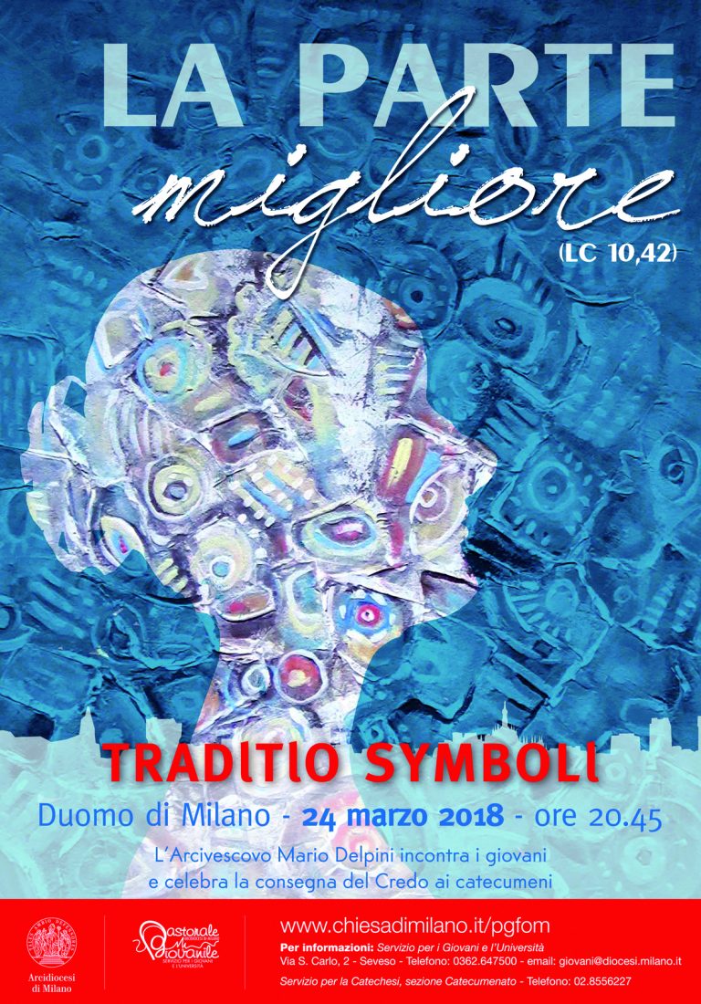 «Non voglio perdere l’occasione di invitarti al prossimo evento diocesano che convoca ogni anno i 18enni e i giovani: la veglia in traditione Symboli, che si celebrerà in Duomo sabato 24 marzo alle ore 20.45. Ti aspetto!». Con queste parole che l’Arcivescovo, monsignor Mario Delpini, ha posto a conclusione della lettera da lui recentemente scritta e inviata ai diciottenni, i giovani della Diocesi vengono invitati a partecipare alla Traditio Symboli, dal titolo «La parte migliore» (Lc 10,42). La celebrazione sarà trasmessa in diretta su Chiesa Tv (canale 195 del digitale terrestre), Radio Mater e www.chiesadimilano.it.