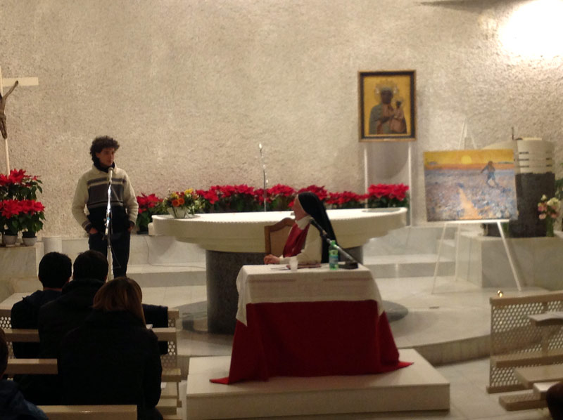 La testimonianza di David Martinez , diciannovenne del Gruppo “Nuovi Orizzonti” di Como, risuona in una chiesa silenziosa e attenta: «Sto provando a essere un uomo libero. Come tutti i miei coetanei, anch’io sono figlio del mio tempo, dove i telegiornali presentano le solite cronache di morte, dove le prime pagine mostrano titoli di stragi e diritti umani violati, dove ti arriva una notifica ogni minuto e mezzo e non hai il tempo di organizzare la giornata perché sei impegnato a condividere le tue foto e i tuoi video per reclamare al mondo la tua parte di riconoscimento… Ma, nonostante tutto questo, ogni giorno lotto per arrivare a fine giornata e trovare una serenità meravigliosa. Il mio incontro con Dio è cominciato durante una “Luce Nella Notte” di Nuovi Orizzonti. Dopo un incontro simile, la tua vita cambia come con uno schianto e ti costringe ad amare gli altri, soprattutto quelli dai quali non andresti mai: è lì che l’amore può funzionare perché quando dici “sì” iniziano i miracoli», racconta. Un “incontro”, quello di David che, nel tempo, è diventato un percorso.