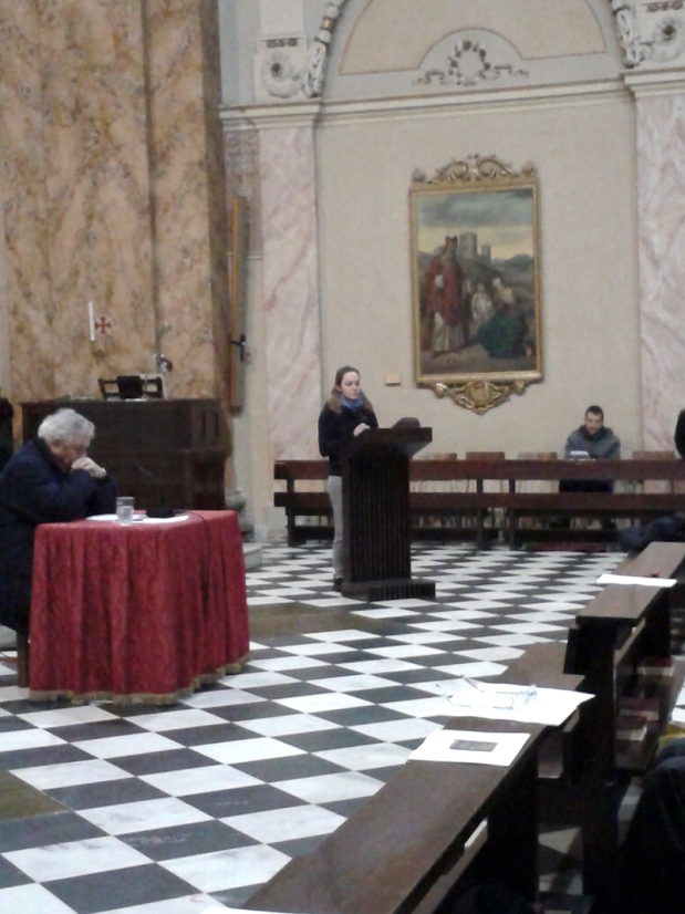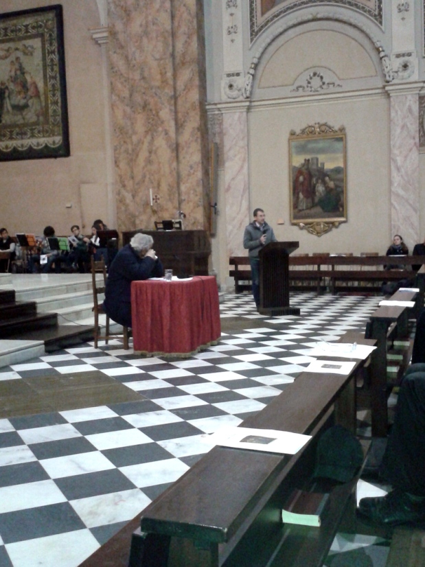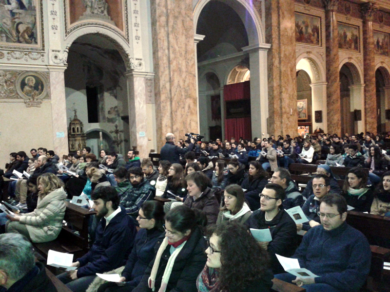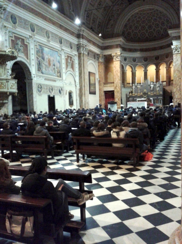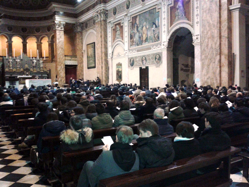 Chiamati anche quest’anno a raccontare e a “raccontarsi” sulle grandi questioni del senso della vita e della fede, i giovani, come sempre, non deludono. Infatti la prima delle catechesi diocesane loro dedicate, svoltasi ieri sera nella basilica di San Nicolò a Lecco – alla presenza del vicario episcopale di Zona monsignor Maurizio Rolla, col saluto iniziale del prevosto monsignor Franco Cecchin – è stata non solo un successo per i numeri (oltre 400 partecipanti), ma soprattutto per l’insieme della serata, che ha avuto al “cuore” la riflessione di un predicatore di eccezione, il teologo padre Ermes Ronchi, frate dell’Ordine dei Servi di Maria e priore della Comunità di San Carlo al Corso a Milano, in dialogo con i ragazzi. Trasmessa su Radio Marconi, sul nostro Portale e in diretta Twitter, la Catechesi è stata così seguita, da casa, anche da molti gruppi parrocchiali e da singoli che hanno posto le loro domande con telefonate e messaggi.