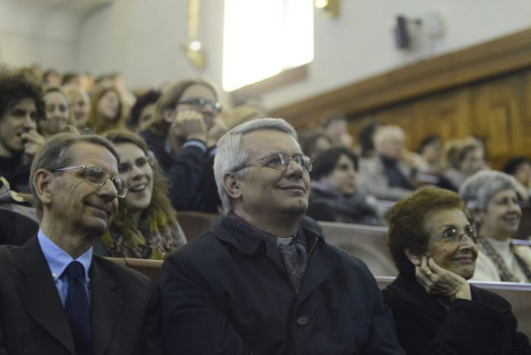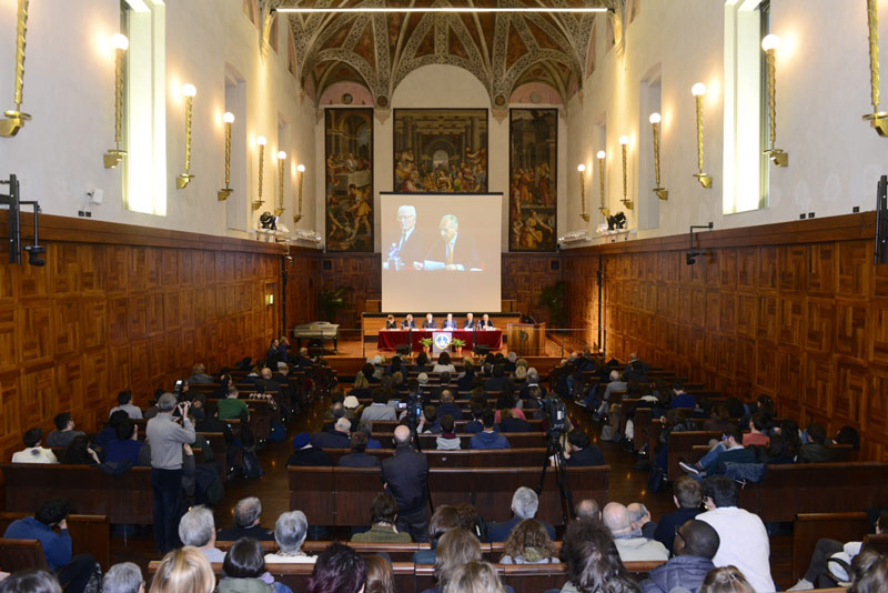 E, certo, fa un poco impressione vedere, in un bel filmato proposto durante l’incontro, un Santo che,. nel 1983, entra da quella stessa porta della grande Aula Magna dove ora lo si ricorda con straordinario affetto, quello che il tempo non riesce a scalfire, anzi aumenta.