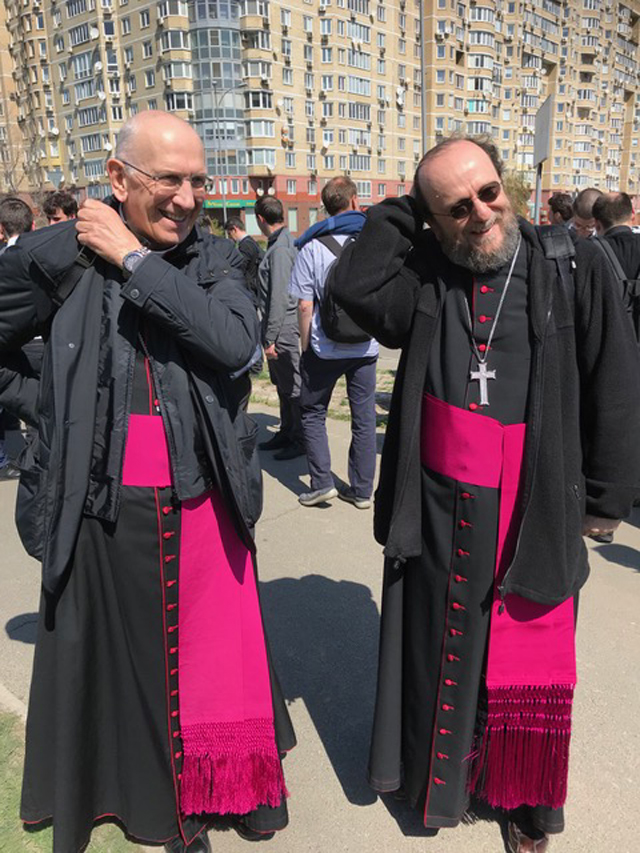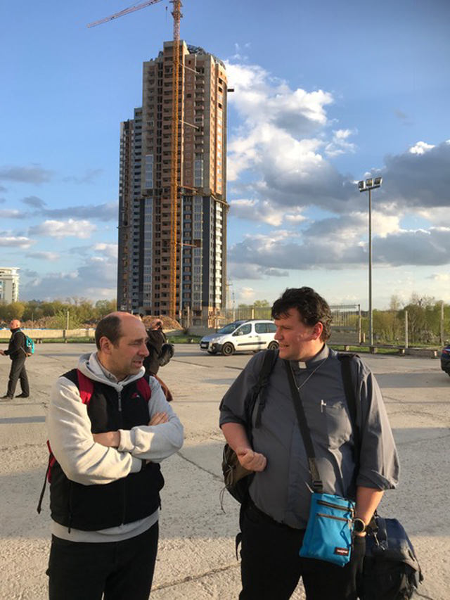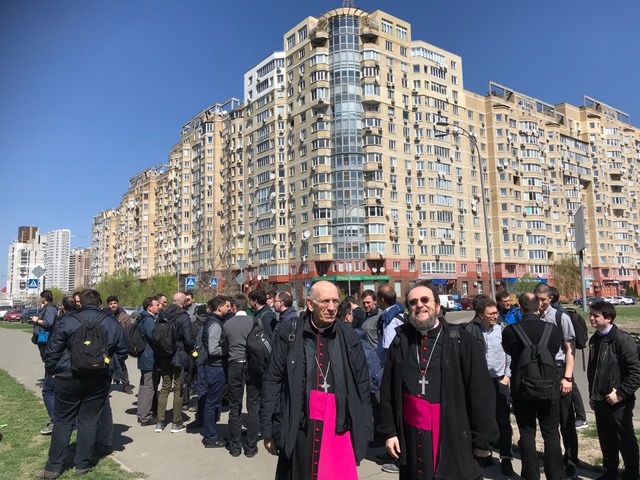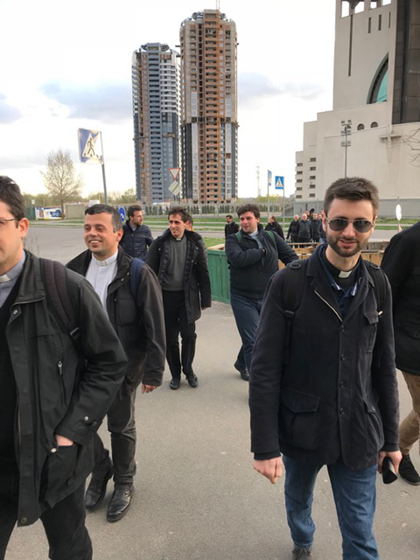 Un enorme complesso residenziale di fattura sovietica, nuovi palazzi che stanno sorgendo ora su una riva e sull’altra del Dnepr. E in mezzo la nuova e monumentale Cattedrale greco cattolica, «la più giovane delle chiese cattedrali orientali», spiegano con orgoglio. A guidare l’incontro con i giovani sacerdoti ambrosiani è l’Arcivescovo Maggiore Greco-Cattolico Sviatoslav Shevchuk, riferimento per i greco-cattolici di Kiev, nell’Ucraina e di quelli sparsi nel mondo.