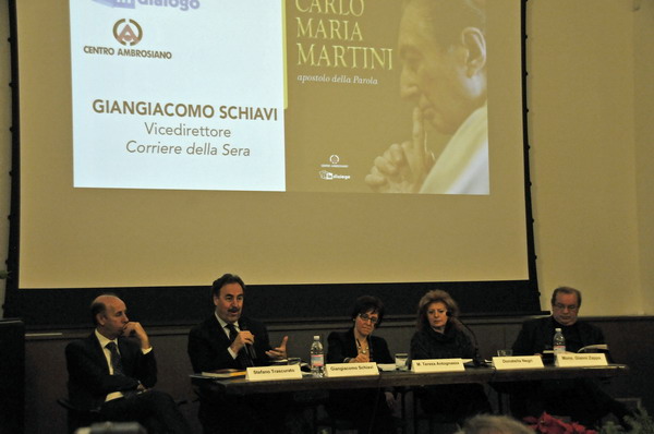 Anche dal vicedirettore del Corriere sono venute parole di grande emozione, nel ricordo degli incontri con Martini presso la redazione del quotidiano milanese: «Confessandoci – ha detto Schiavi – che se non fosse diventato prete avrebbe desiderato fare il giornalista, si metteva in mezzo a noi come un vero direttore, in attento ascolto delle nostre visioni e valutazioni della situazione, molto curioso degli accadimenti e pronto a interrogarci su ogni cosa. Sfogliando questo libro – ha poi aggiunto – si sente ancora la sua voce ed è come se Martini fosse ancora in mezzo a noi». Schiavi ha poi ricordato la grande attenzione del cardinale al mondo dei mass media, su cui era molto informato: «Voleva sapere da noi operatori della comunicazione come il giornale e la tv potessero diventare strumenti capaci di trasmettere quella speranza e quelle buone notizie di cui Milano e il mondo avevano tanto bisogno».