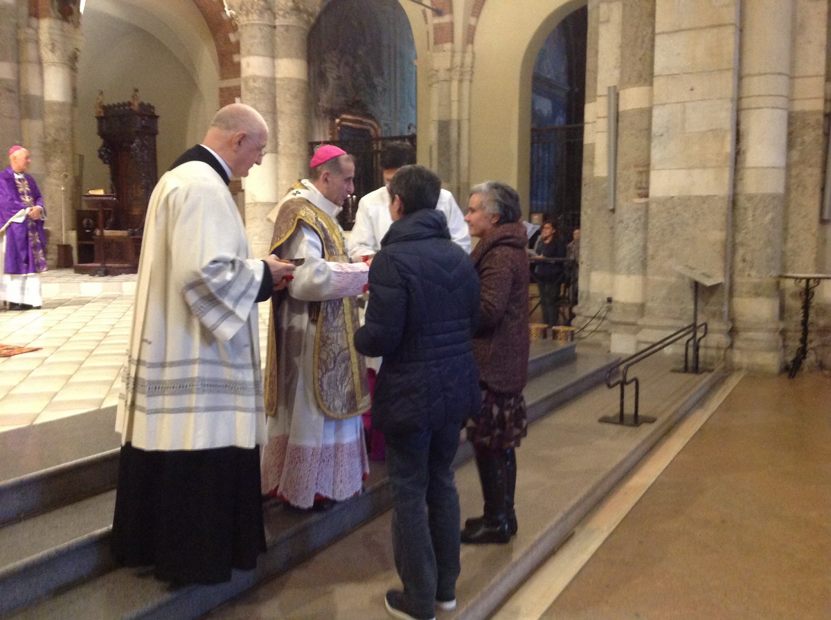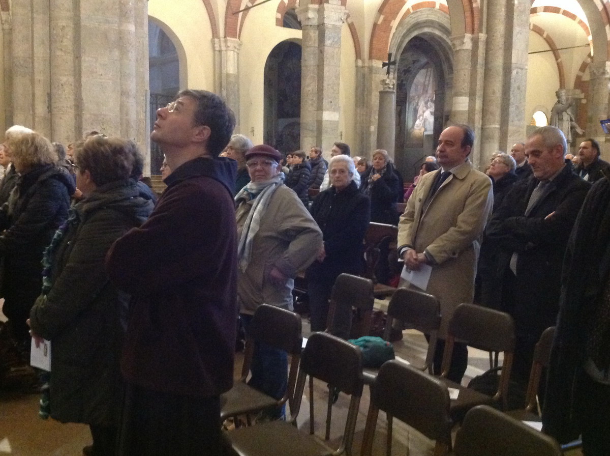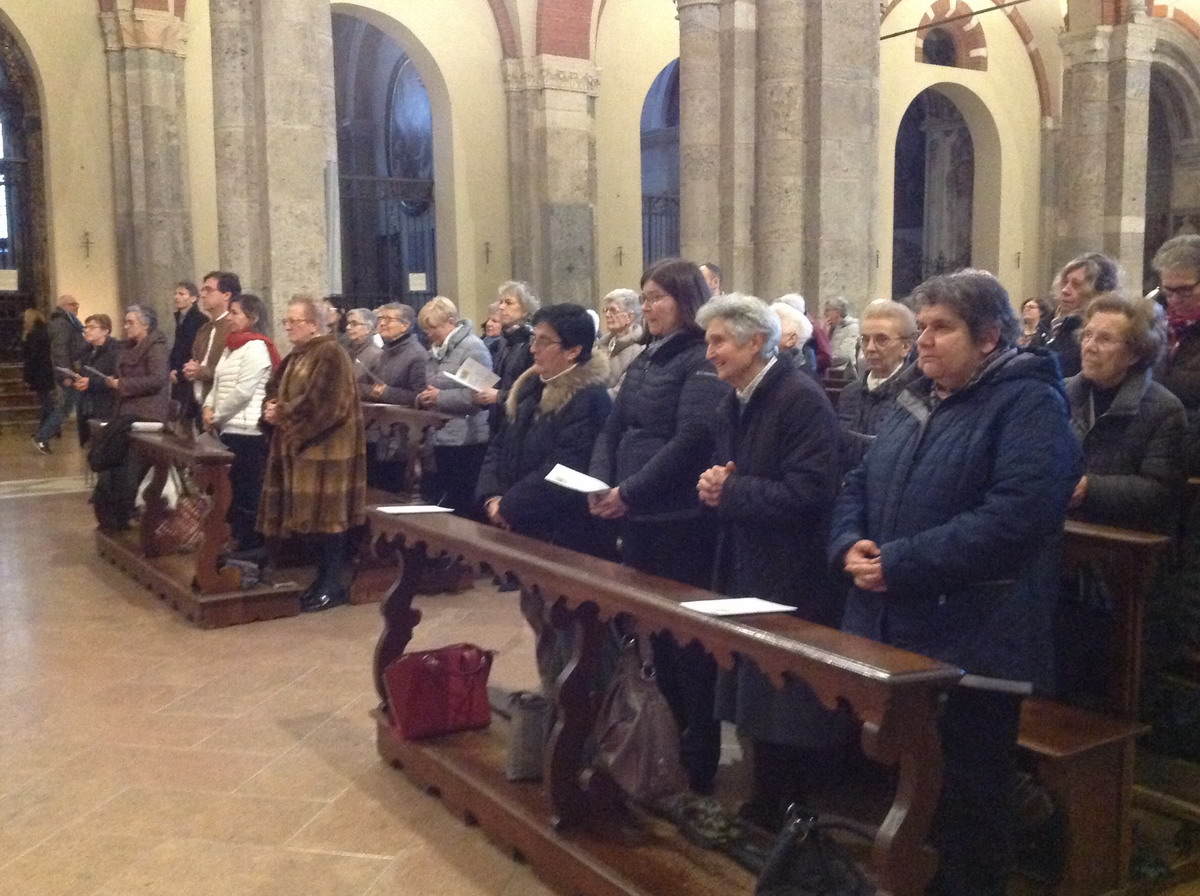 La mattina si conclude con la Messa in Basilica – «in questo luogo che ci è caro e nel quale ci sentiamo a casa» -, concelebrata da una ventina di sacerdoti, tra cui i vescovi Giovanni Giudici, Paolo Martinelli, vicario episcopale per la Vita Consacrata maschile e le Forme di Nuova Consacrazione, Claudio Giuliodori, il vescovo maronita di Aleppo, Joseph Tobji, in visita a Milano, l’abate di “Sant’Ambrogio”, Carlo Faccendini e l’assistente generale dell’Istituto, il francescano padre Ernesto Dezza.