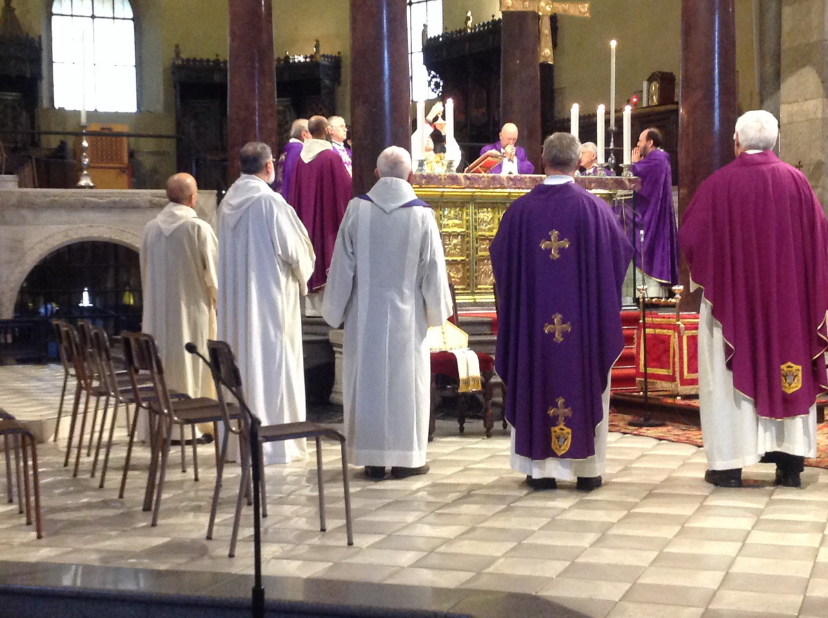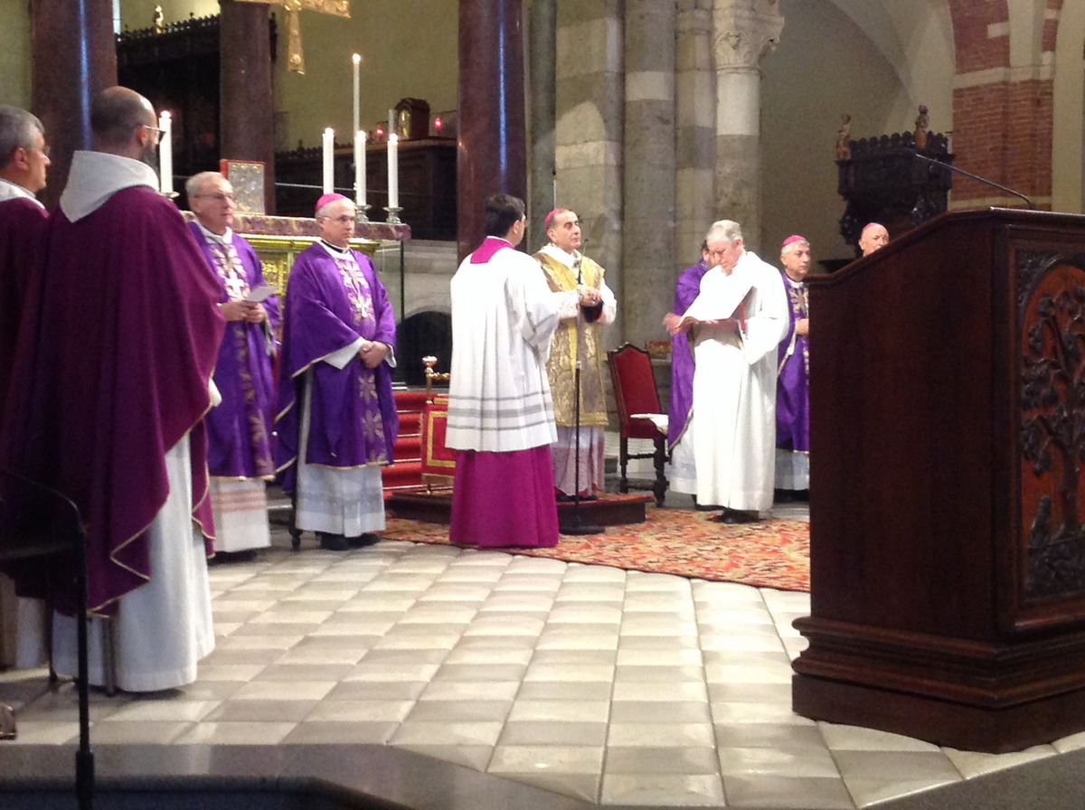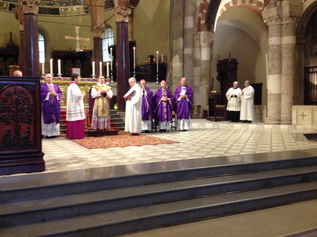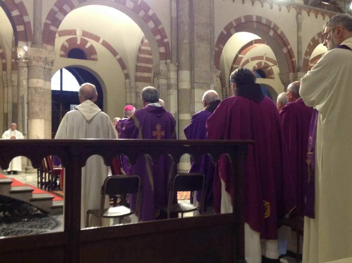 La mattina si conclude con la Messa in Basilica – «in questo luogo che ci è caro e nel quale ci sentiamo a casa» -, concelebrata da una ventina di sacerdoti, tra cui i vescovi Giovanni Giudici, Paolo Martinelli, vicario episcopale per la Vita Consacrata maschile e le Forme di Nuova Consacrazione, Claudio Giuliodori, il vescovo maronita di Aleppo, Joseph Tobji, in visita a Milano, l’abate di “Sant’Ambrogio”, Carlo Faccendini e l’assistente generale dell’Istituto, il francescano padre Ernesto Dezza.