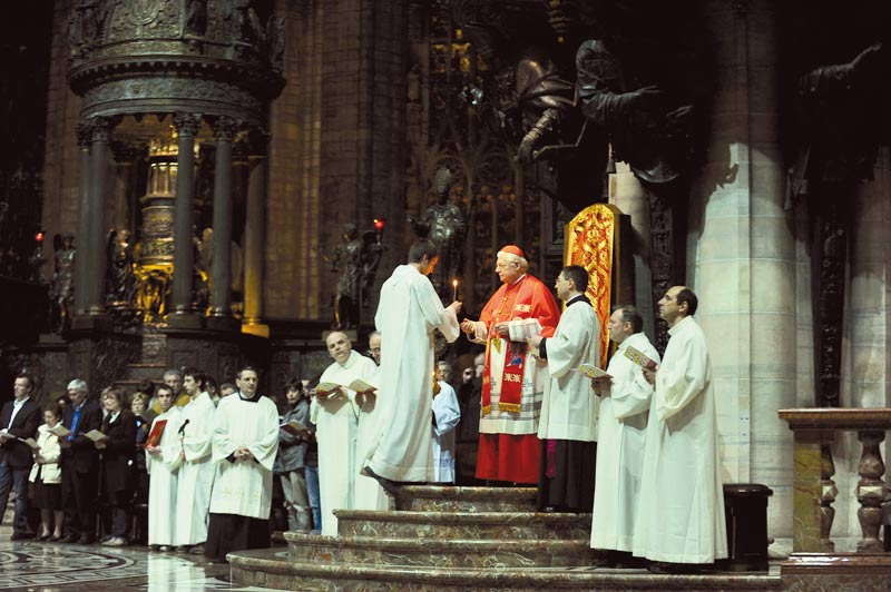 Hanno scelto di trascorrere un sabato diverso i giovani che ieri sera hanno partecipato alla Veglia “in Traditione Symboli” affollando il Duomo. Raccolti intorno all’Arcivescovo hanno rivissuto l’antico rito della consegna del Credo rinnovando ancora una volta la loro fede nel Signore. Oltre al cardinale Angelo Scola altri preti erano presenti sull’altare, in particolare mons. Severino Pagani e don Maurizio Tremolada del Servizio giovani e don Paolo Sartor del Catecumenato.