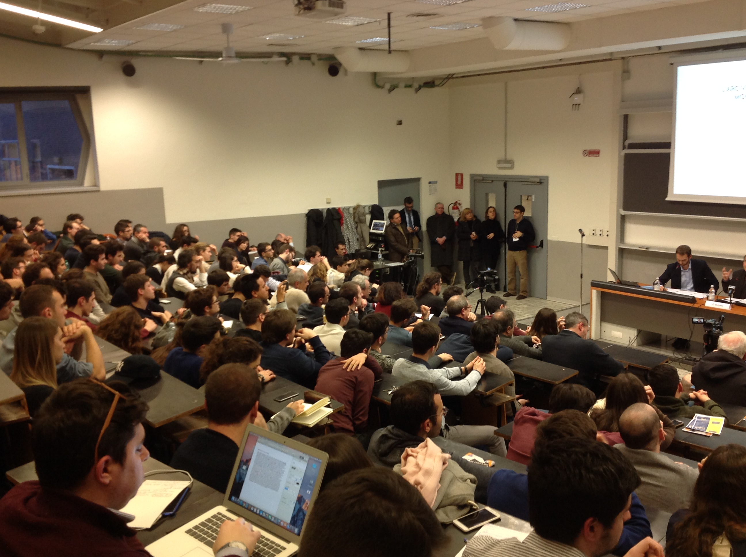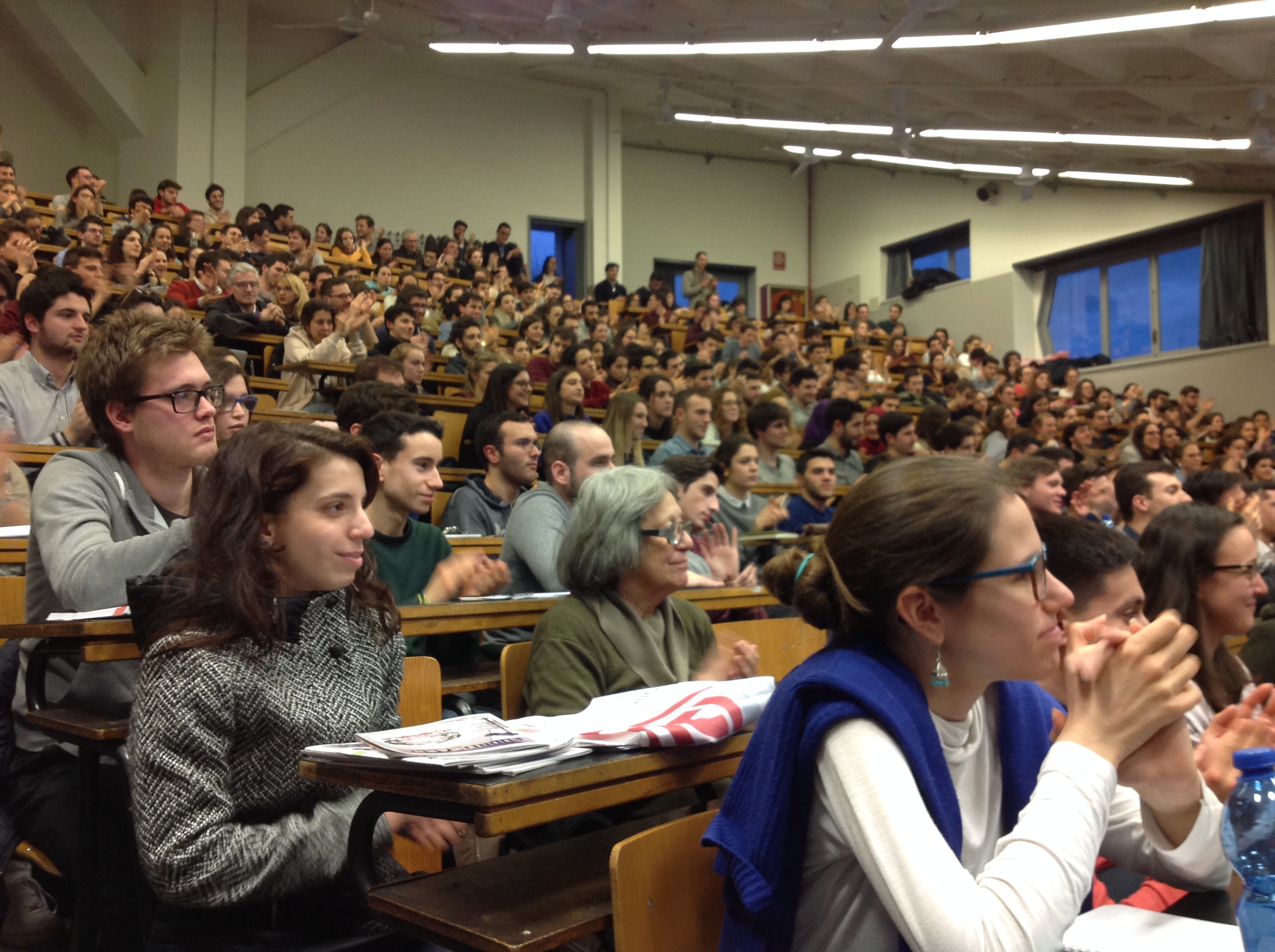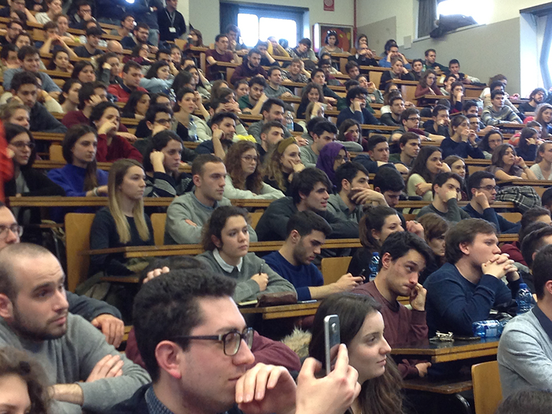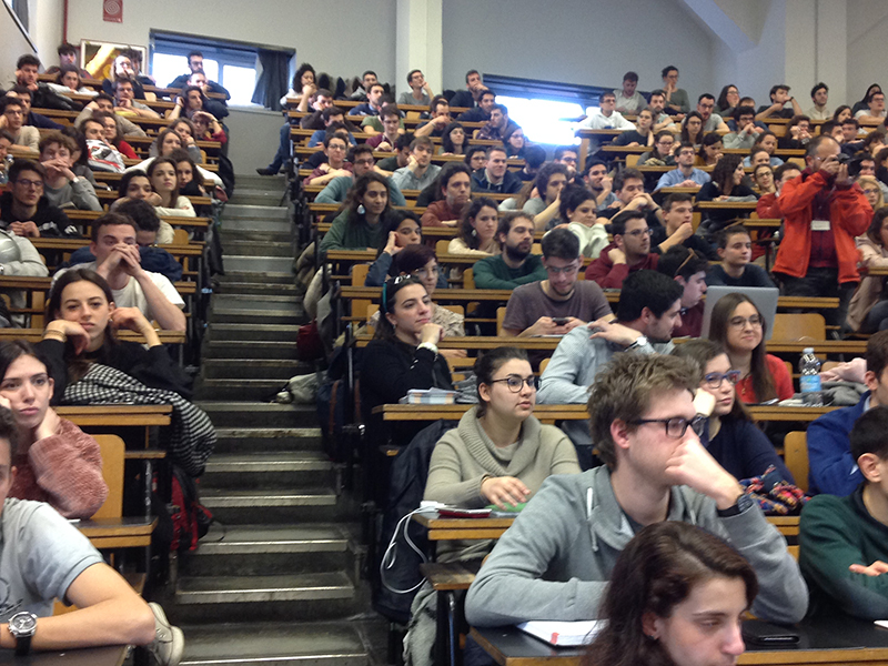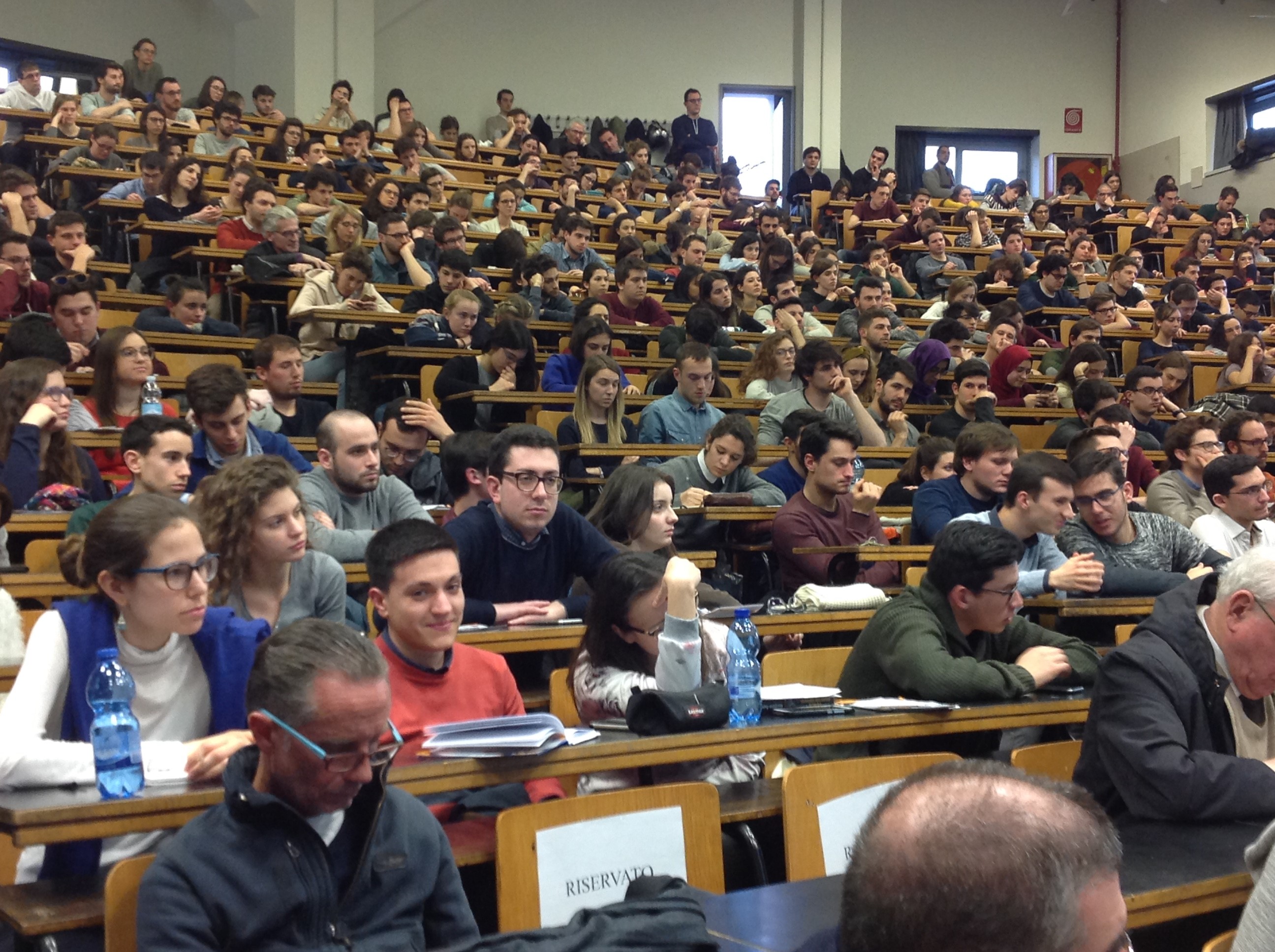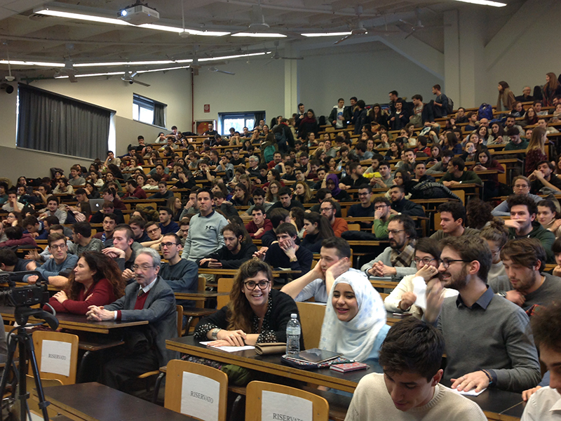 «Vedere questa aula piena non è banale». È chiarissimo (ed evidentemente soddisfatto) il rettore del Politecnico, Ferruccio Resta, nel dare il benvenuto all’Arcivescovo che intende mettersi in ascolto dei giovani. Ragazzi che accorrono in massa, affollando l’emiciclo dell’incontro e altre due aule collegate, per un totale di oltre 1000 presenze.Parla, il rettore – alla guida della prestigiosa Università frequentata da 42.000 studenti dal gennaio 2017 – di attenzione allo studio, delle grandi difficoltà che incontra la ricerca, dei cambiamenti che chiedono «alla formazione di comprendere il mutamento dei tempi». Vogliamo, aggiunge, «disegnare valori attraverso uno sviluppo sostenibile non limitato alle questioni ambientali; vogliamo dare un’uguaglianza di opportunità, crediamo in una comunità multietnica e unica. La nostra è una responsabilità sociale che tocca trasversalmente ognuno e le nostre competenze».