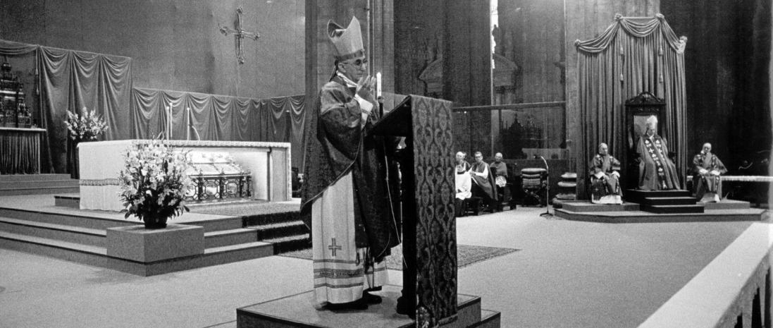 Solo da pochi decenni si sono costruiti da noi palazzi più alti della guglia maggiore. Ma nel mare desolato dell’odierna esistenza, per moltissimi milanesi la Madonnina e il Duomo rappresentano ancora il faro più luminoso, il punto di riferimento più certo e più rasserenante. Agli uomini frastornati e delusi, la speranza del Regno di Dio e la consapevolezza di avere sempre nella Chiesa del Dio vivo «la colonna e il fondamento della vita» sono ancora capaci di ridare coraggio.