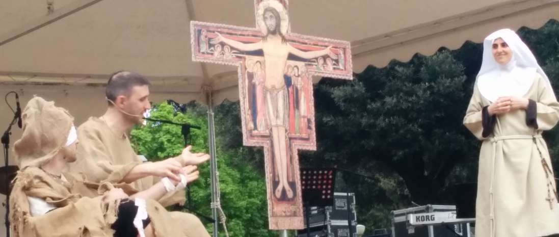 La festa si è svolta nella piazza della Basilica di Santa Maria degli Angeli ed è stata animata dai frati minori e dalle suore francescane che vivono attorno alla Porziuncola. In diversi quadri scenici, in cui i frati e le suore hanno cantato, ballato e dato testimonianza della loro vocazione, sono state presentate le figure di San Francesco e Santa Chiara e posto un accento al tema della fraternità, lanciando il messaggio: «Si può essere felici solo con gli amici».