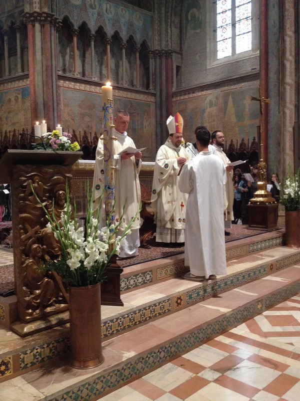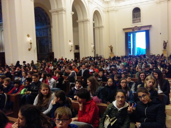 L’eucaristia, celebrata sotto gli affreschi di Giotto nella mattina di sabato 2 maggio, è stata preceduta il giorno prima da una festa di accoglienza da parte della fraternità francescana e alla presenza dell’Arcivescovo di Assisi, monsignor Domenico Sorrentino che, rivolgendosi ai ragazzi, li ha invitati a tornare a casa con un carico di gioia e di letizia.