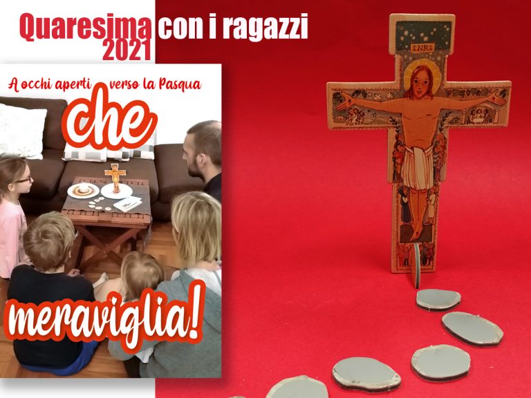 Come per il tempo di Avvento, anche in Quaresima sarà reso disponibile on line uno schema di celebrazione della domenica in famiglia, frutto della collaborazione dei Servizi diocesani che si riferiscono al Vicariato per l’evangelizzazione e la celebrazione della fede. Alle famiglie si chiede di ritrovarsi a celebrare la domenica anche in casa, facendo riferimento ai temi del percorso «Che meraviglia!» e approfondendoli insieme. Potrebbe compiersi il sabato sera, introducendo la domenica e impegnandosi ad andare a Messa il giorno successivo, o potrebbe essere la domenica prima di pranzo o in un altro momento della giornata da decidere insieme. Il gesto proposto nel testo è abbinato al cammino delle pietre della Quaresima della Croce dello stupore (si toglie la patina argentata e si scopre il gesto da compiere e la preghiera della settimana). Con la Croce dello stupore si chiede a bambini e ragazzi di alzare lo sguardo verso Gesù e di pregarlo, investendo nella preghiera due minuti al giorno, lasciandosi guidare dalle brevissime preghiere disponibili nel libretto abbinato alla Croce (acquistabile on line).