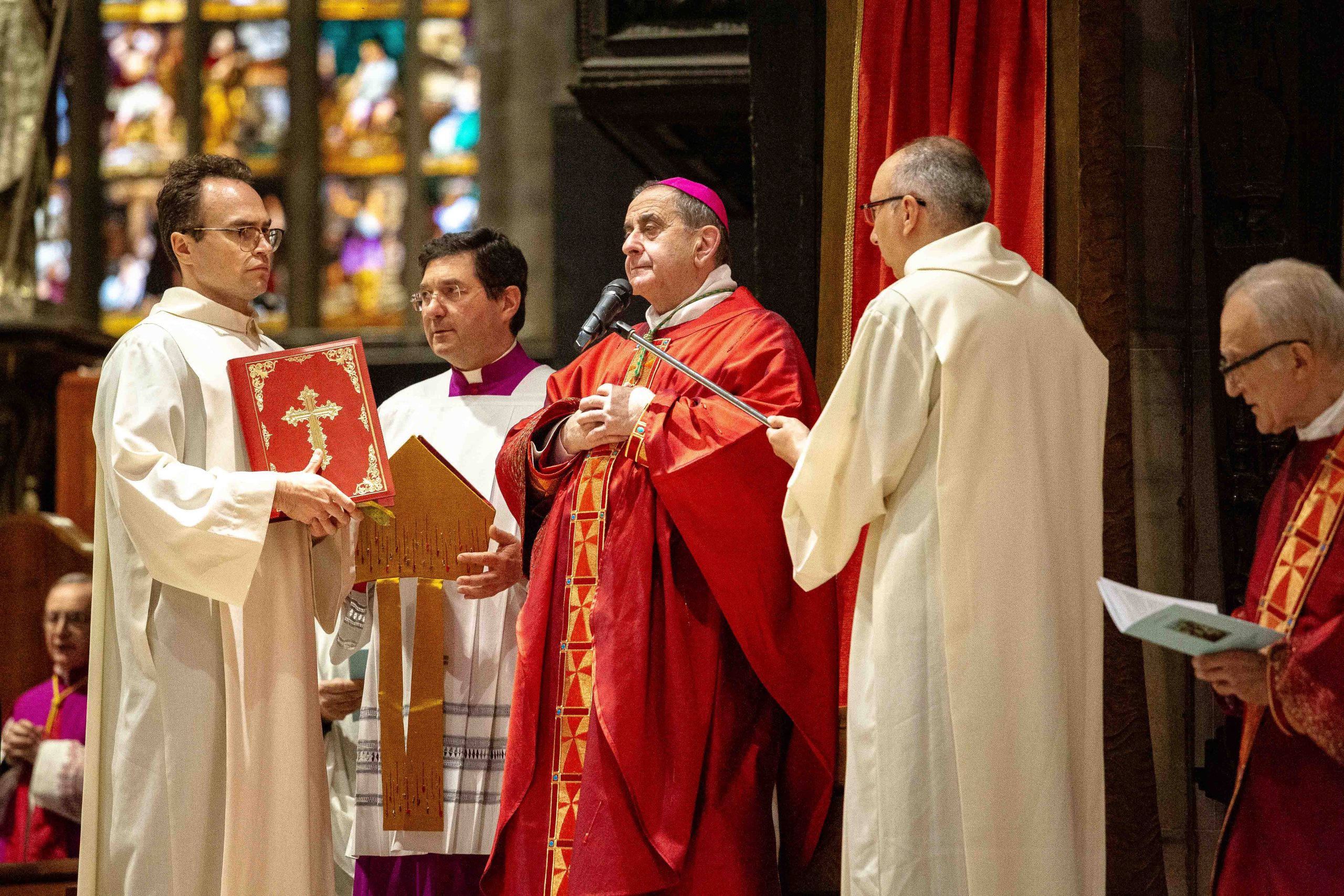 «La liturgia ci propone, e i santi ci incoraggiano, a vivere questo giorno nella meditazione dei racconti della Passione», sottolinea in apertura della sua riflessione l’Arcivescovo, che richiama l’enciclica di papa Francesco Dilexit nos e la centralità della devozione al Sacro Cuore: «Forse qualche frammento di questa storia di devozione al cuore trafitto può aiutare anche noi a vivere la contemplazione della Passione e l’adorazione della croce e a trovare, finalmente, una decisione di rispondere alla nostra vocazione alla santità. Perciò propongo di raccogliere la testimonianza di tre santi», spiega l’Arcivescovo.