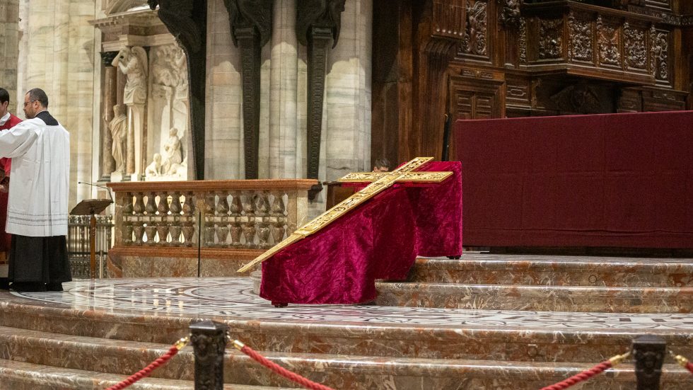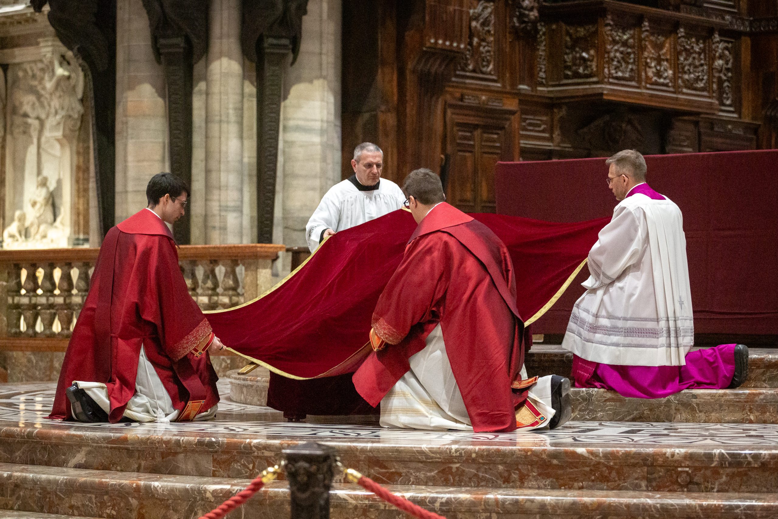 Un atteggiamento del cuore confermato, subito dopo, dall’adorazione della croce – portata in processione, attraverso tre soste, dal fonte battesimale di epoca borromaica all’altare maggiore – e dalla preghiera universale. La più solenne dell’anno liturgico, con le sue 11 orazioni che paiono abbracciare il mondo intero, dal Papa alla Chiesa, dai fratelli maggiori ebrei ai cristiani di tutte le Confessioni, da chi non crede ai governanti, dall’umanità sofferente per tutte le epidemie a chi è in guerra, fino ai defunti.