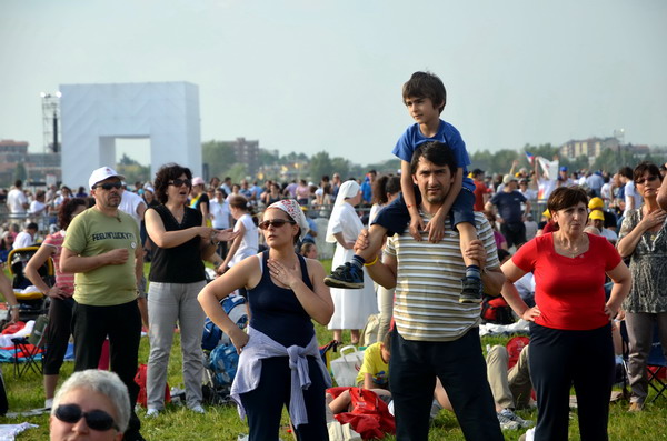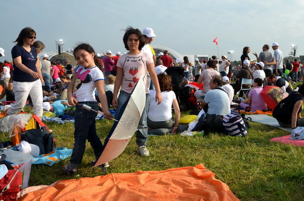 Un mondo di volti, di colori, di voci. E poi migliaia e migliaia di mani alzate verso le cielo, giunte in preghiera, strette le une alle altre. Una grande festa della vita, quella che si è celebrata nella gioia e nella condivisione nell’area dell’aeroporto di Bresso, fra le testimonianze del sabato sera e la celebrazione eucaristica della domenica mattina.
