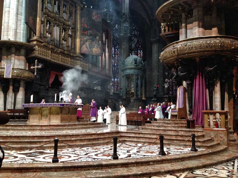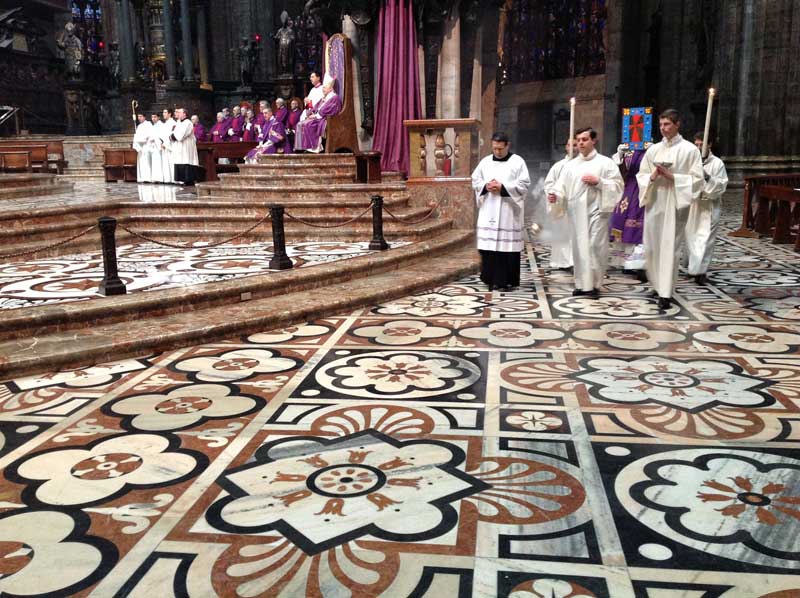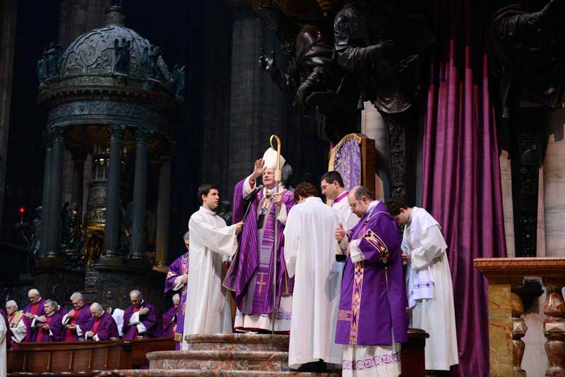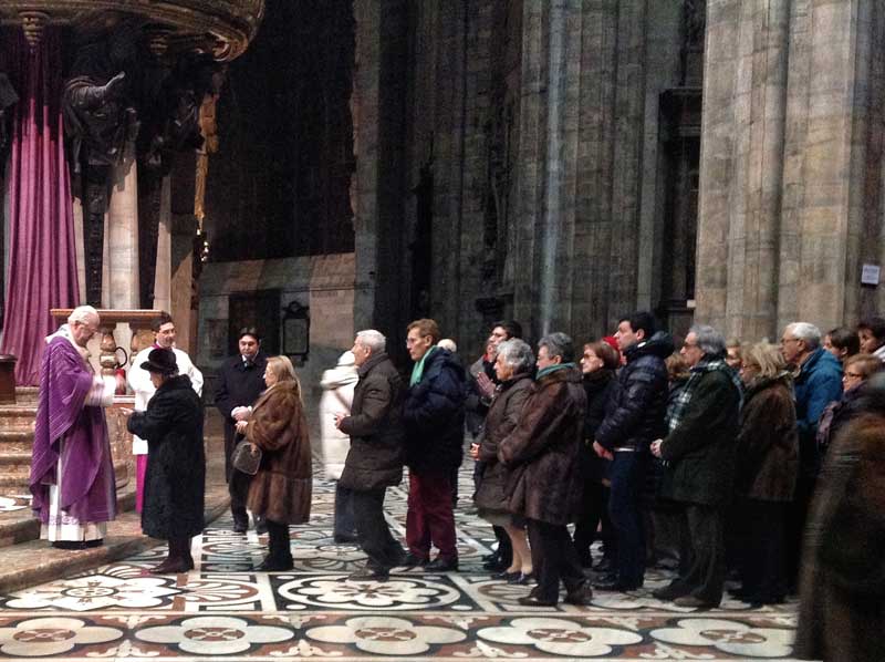 Molti i fedeli accorsi per la Celebrazione che si conclude con il rito delle ceneri. A loro si rivolge il Vicario generale mons. Mario Delpini quando appena prima dell’omelia del Cardinale legge le parole che lo stesso Scola ha scritto a seguito delle dimissioni di Papa Benedetto XVI. Un testo che è stato ripetuto durante tutte le messe festive in tutte le chiese della Diocesi di Milano.