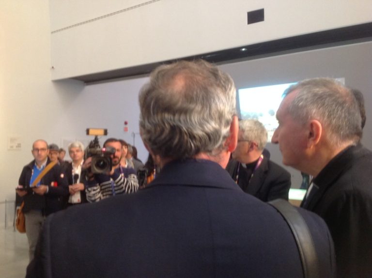 Il cardinale Parolin è stato guidato a scoprire i contenuti del Padiglione – a oggi visitato da un milione e 210 mila persone (circa 430 mila solo in settembre) – e ha sottolineato: «È una traduzione quasi plastica dell’invito che il Santo Padre ha rivolto all’Onu», parlando di ambiente, di cura del creato e di esclusione sociale dei più poveri. «Questo Padiglione ha una dimensione particolare perché è un invito alla riflessione sui grandi problemi dell’uomo e sulle risposte che la Chiesa dà a questi problemi e a queste difficoltà – ha continuato il Cardinale -. Mi ha colpito entrando questa galleria di volti, l’insistenza sulle persone concrete e non sui temi astratti, sulle difficoltà vissute da ogni persona, da intere popolazioni». Il collegamento con quanto detto dal Santo Padre alle Nazioni Unite starebbe proprio in questa «concretezza», secondo il Segretario di Stato: «Il Papa ha chiesto di non trasformare i grandi problemi del mondo soltanto in teoria, ma di vederli riflessi nel volto di ogni uomo e ogni donna. Ha insistito su questa concretezza. Quello che manca, è la volontà politica di dare una risposta umana a questi problemi che deve incarnarsi in scelte pratiche e costanti».