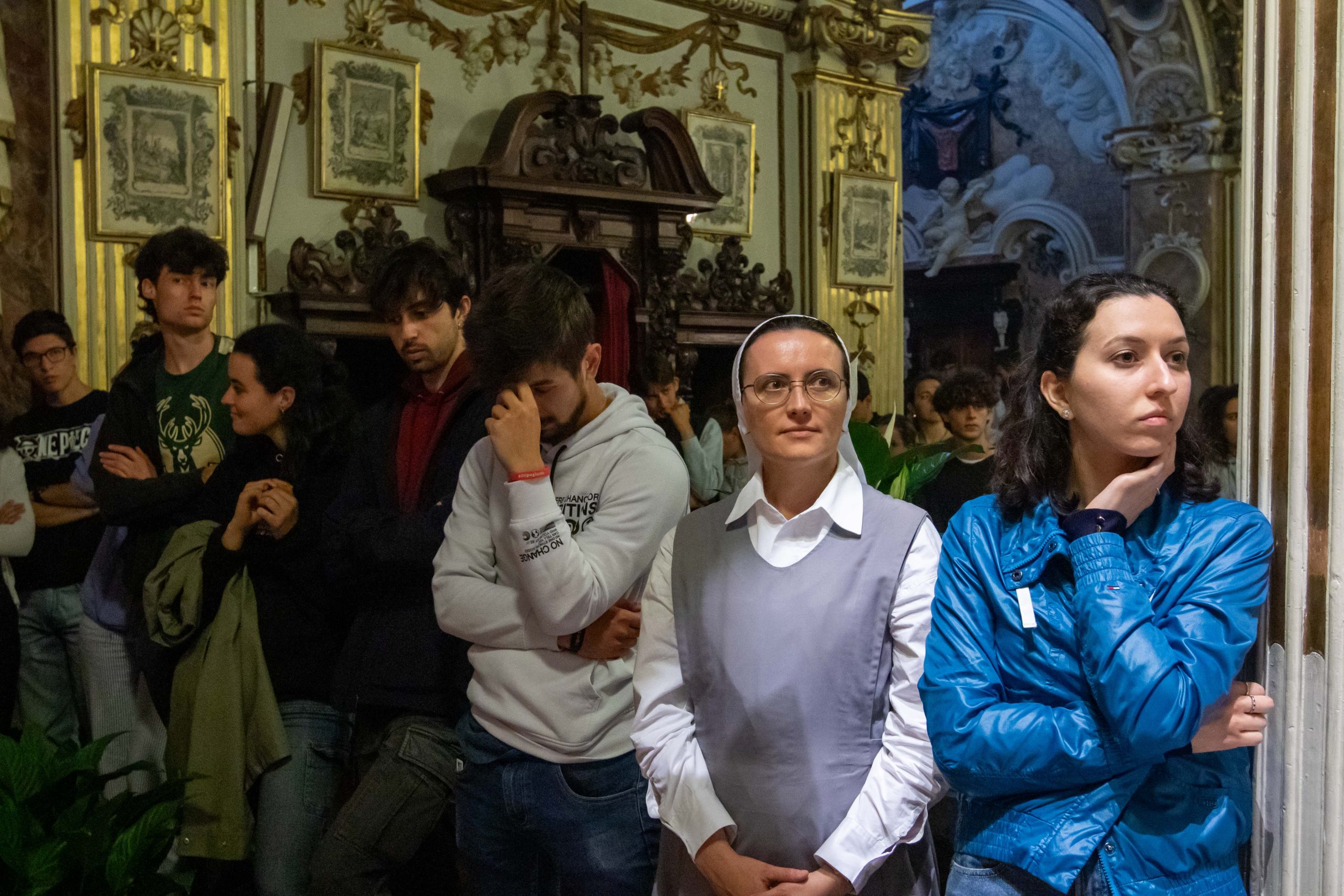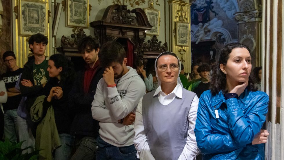 La salita per la via delle Cappelle del Sacro Monte, sfidando un cielo grigio e minaccioso, le soste in preghiera in un clima di grande raccoglimento, la recita del Rosario in cinque tappe, accompagnate – a ogni decina – da stralci dell’omelia di Giovanni Paolo II per la beatificazione di Pier Giorgio Frassati e da lettere di questo giovane straordinario che verrà canonizzato il 3 agosto. La gioia di vivere insieme un momento tanto significativo come il Giubileo diocesano degli universitari con l’arrivo nel Santuario di Santa Maria del Monte, dove si affollano in 400, tra studenti, docenti, ricercatori e cappellani.