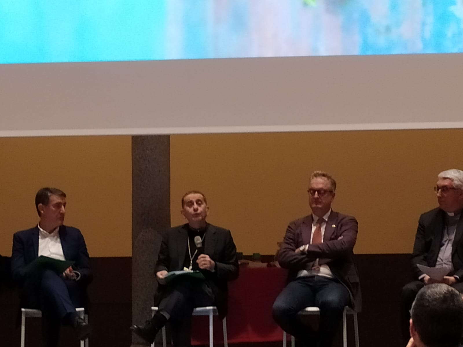 Dopo l’intervento dell’Arcivescovo si sono confrontati sul temi della tutela del creato: Roberto Buizza professore di Fisica alla Scuola Superiore S. Anna di Pisa, mons. Domenico Pompili, Arcivescovo di Rieti, Davide Bernocchi, consigliere speciale di Caritas Internationalis.