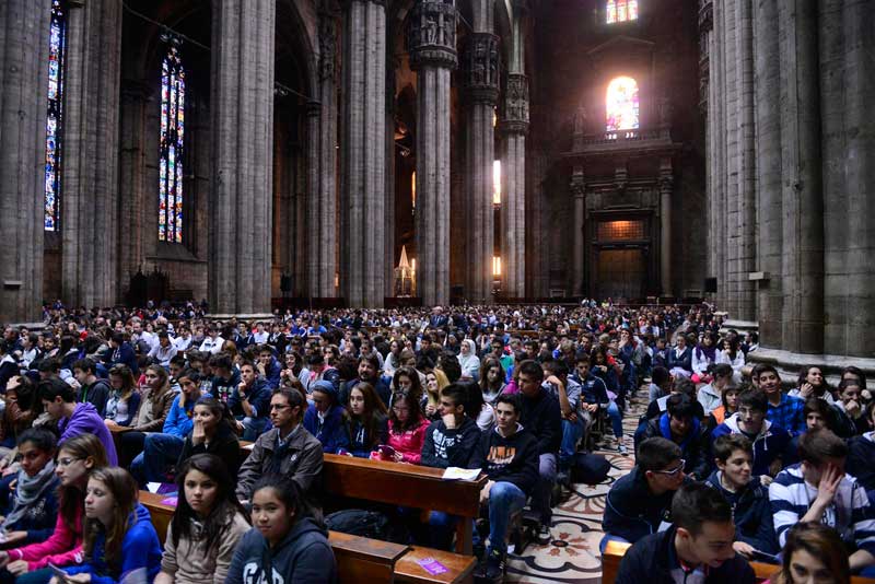 “Colui che è invisibile agli occhi si è servito di un corpo per farsi conoscere. Noi oggi qui, tutti insieme, siamo un corpo solo, quello della Chiesa. E allora ecco perché diventa importante il tema per cui siamo qui a pregare. La preghiera di stasera ha lo scopo di ricordarci quanto il corpo sia prezioso”. Così l’Arcivescovo di Milano Angelo Scola ha introdotto agli animatori degli oratori estivi che si sono raccolti in Duomo alle 19 il tema scelto per quest’anno dalla Fom, Fondazione Oratori Milanesi: “Every body – un corpo mi hai preparato”.