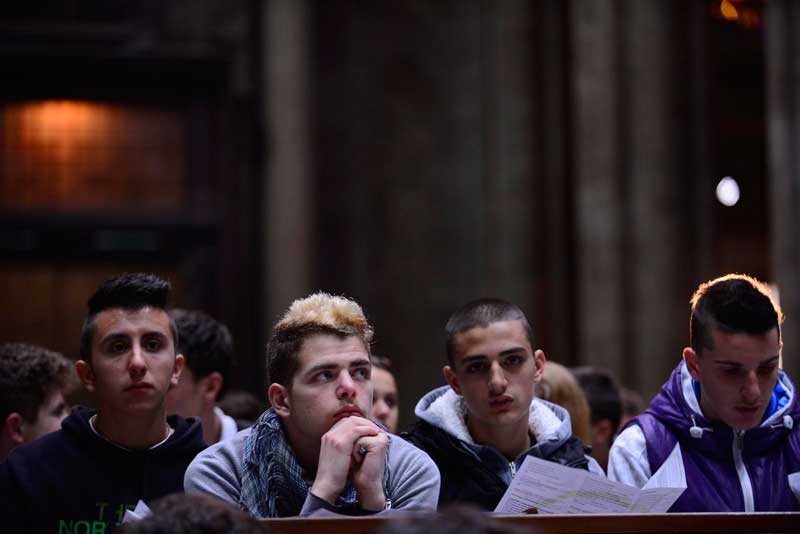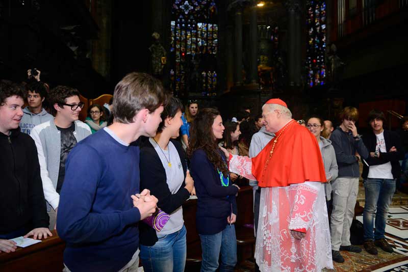 “Io appena sono entrato ho sentito il vostro applauso, che è il vostro modo di dirmi che mi volete bene – ha detto il Cardinale Scola – e quando abbiamo cominciato a pregare, ecco che siete stati in silenzio. Vedete? Il corpo è ciò con cui comunichiamo quello che siamo, ed è una sola cosa con quello che chiamiamo spirito. Attraverso di esso capisco se l’altro soffre o gioisce, attraverso esso consolo un amico, esprimo benevolenza per un povero per strada, insomma senza di esso non si può comunicare. Ecco perché Gesù ha preso il corpo: per parlare con Dio. Ecco perché quindi il corpo non è un semplice strumento, un semplice mezzo, chiamarlo così sarebbe riduttivo: esso è il sacramento di tutta la nostra persona. Attraverso ogni sua azione passa la totalità di quello che siamo, perché l’uomo è corpore et anima unus, ovvero è uno di anima e corpo”.