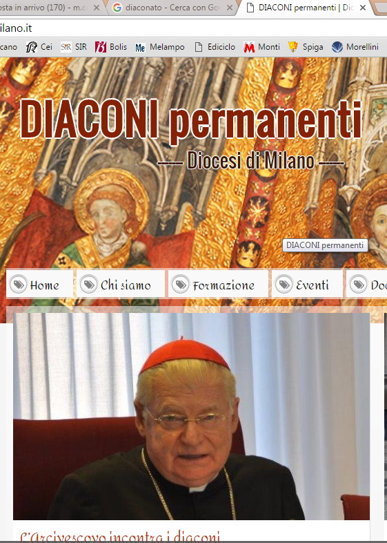 Come anticipato sabato 3 settembre nel corso dell’incontro con l’Arcivescovo, è da poco on line il nuovo sito del diaconato www.diaconatomilano.it. Oltre che uno strumento di informazione sulla vita del Diaconato e le attività di formazione, il nuovo sito – caratterizzato da una certa sobrietà – vuole essere anche un mezzo per la comunicazione tra i diaconi. Vi si potrà reperire molto materiale anche storico, per conservare la memoria del cammino compiuto.