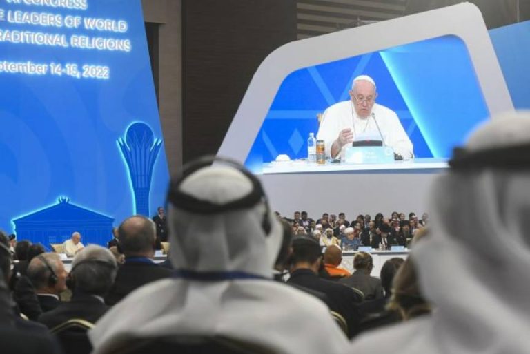 «Non abituiamoci alla guerra», «Dio è pace e conduce sempre alla pace». Con questo auspicio il Papa ha cominciato e concluso il suo intervento al Congresso dei leader delle religioni mondiali e tradizionali, nel Palazzo dell’Indipendenza di Nur-Sultan, subito dopo la preghiera silenziosa di tutti i partecipanti, alcuni dei quali incontrati in privato al termine della sessione plenaria.