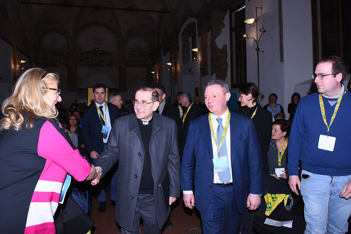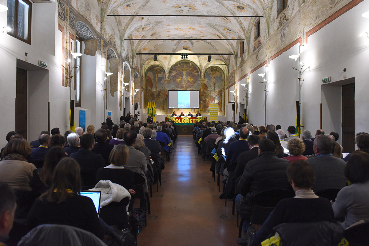 Letture dal Libro della Genesi (il giardino dell’Eden) e dal Vangelo di Luca (la parabola del ricco e del buon raccolto), la preghiera e filmati sull’attività della Federazione danno avvio ai lavori. Alessandro Rota, presidente di Coldiretti Milano, Lodi Monza Brianza, definisce il carattere fondativo dell’istituzione: «In tutti i nostri Statuti, in quello di Milano e della nostra Federazione nazionale, sono iscritti i principi della Dottrina cattolica. Abbiamo due grandi fortune: poter toccare con mano i frutti della terra e avere un’ipotesi positiva della nostra fatica. Oggi siamo la più importante realtà di rappresentanza del mondo agricolo, con 50 mila imprese (6 mila solo nel territorio di Milano), 60 mila addetti diretti e un grande indotto. Lavoriamo per un’agricoltura sempre più sostenibile, che trova le sue radici nell’antica tradizione della cascina lombarda dov’era vietato sprecare. Eppure abbiamo perso certezze in questo momento storico, nel quale dobbiamo mettere in campo battaglie, per esempio, per difendere il dono dell’acqua».