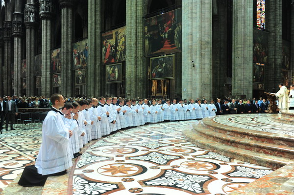 «L’Orazione e la Benedizione al termine del rito domanda per loro perseveranza nella vocazione – ha proseguito il cardinale Scola -. È provvidenziale che il Santo Evangelo ci presenti oggi la figura di San Giuseppe, colui che, in modo eminente, fu preso a servizio del Disegno d’amore di Dio sul mondo. In questi nostri fratelli risplende così quello che è proprio di tutti i cristiani: essere gratuitamente chiamati dal Padre per diventare segno e strumento (sacramento) della Sua salvezza per gli uomini lungo la storia».