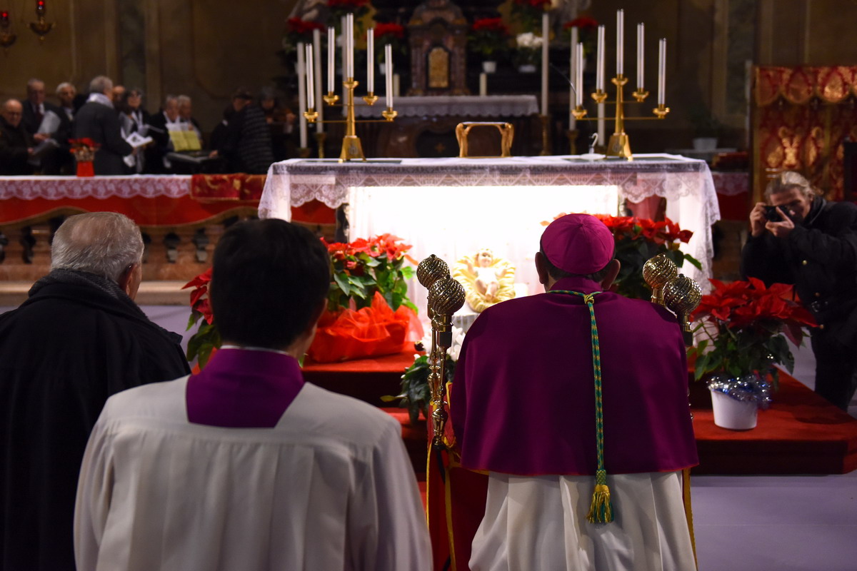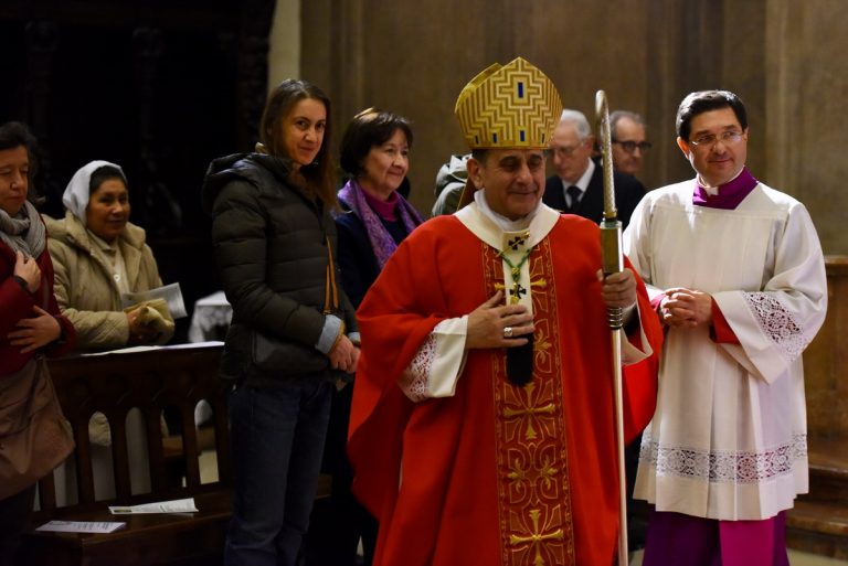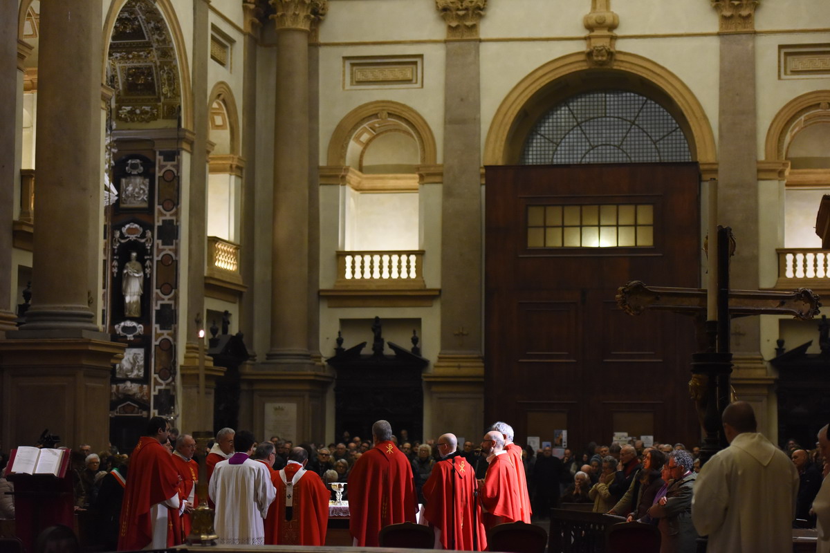 Tra i tanti milanesi che affollano la chiesa, ci sono anche i rappresentanti delle Istituzioni, con la vicesindaco di Milano, Anna Scavuzzo, e Fabio Altitonante, sottosegretario alla Presidenza della Regione Lombardia. Concelebrano il Rito i sacerdoti Gesuiti, affidatari della parrocchia, tra cui i padri Maurizio Teani e Giacomo Costa, rispettivamente parroco di “San Fedele”, il primo, e presidente della Fondazione culturale omonima, il secondo. È padre Teani a ricordare l’anno che si sta concludendo «particolarmente significativo per la Chiesa ambrosiana con il Sinodo minore “Chiesa dalle genti” e l’inizio della Visita pastorale».