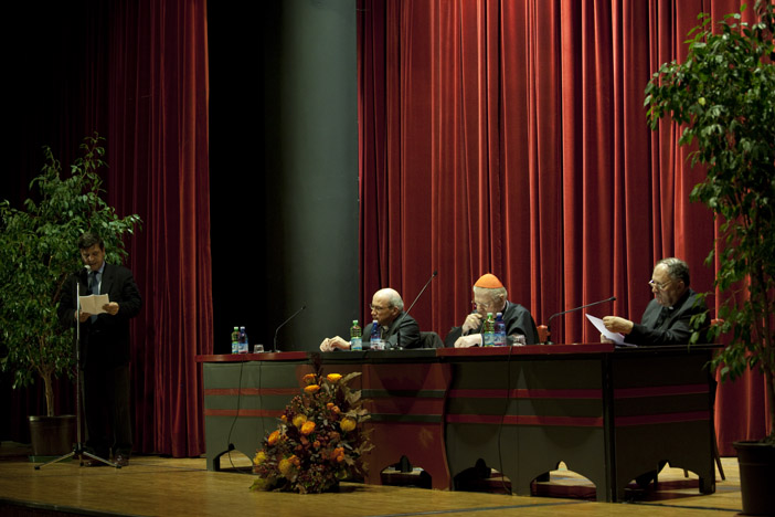 È accompagnato dal Vicario generale monsignor Carlo Redaelli e dal Moderator Curiae monsignor Gianni Zappa, ma a fare gli onori di casa è naturalmente monsignor Erminio De Scalzi, Vicario episcopale di Milano, che avvisa l’Arcivescovo che tante persone presenti «vengono da una giornata faticosa di lavoro, di impegni familiari e qualcuno forse non ha neppure cenato, ma questo capita non solo quando viene lei, ma anche in tante sere nelle quali i laici condividono la corresponsabilità in parrocchia con i loro preti».