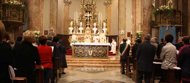 Una guida amorevole che il cardinale Scola non ha fatto mancare, rivolgendo riflessioni molto concrete ai fedeli durante l’omelia: «Certamente viviamo un tempo non facile. Anche la vostra città, la cui tradizione è molto antica e la cui operosità è molto nota per l’attività manifatturiera dei calzaturifici, patisce le morse della crisi, in questo momento che soprattutto rischia di togliere speranza ai nostri giovani, rischia di non aprire loro quella prospettiva concreta di futuro che consenta poi di fare una scelta giudiziosa dal punto di vista dello stato di vita con un matrimonio solido, fedele, aperto alla vita e anche, di conseguenza, capace di educazione, di costruire la comunità cristiana e, con le debite distinzioni, di impegnarsi per la vita buona di tutta quanta la città. È una prova che stiamo tutti attraversando».