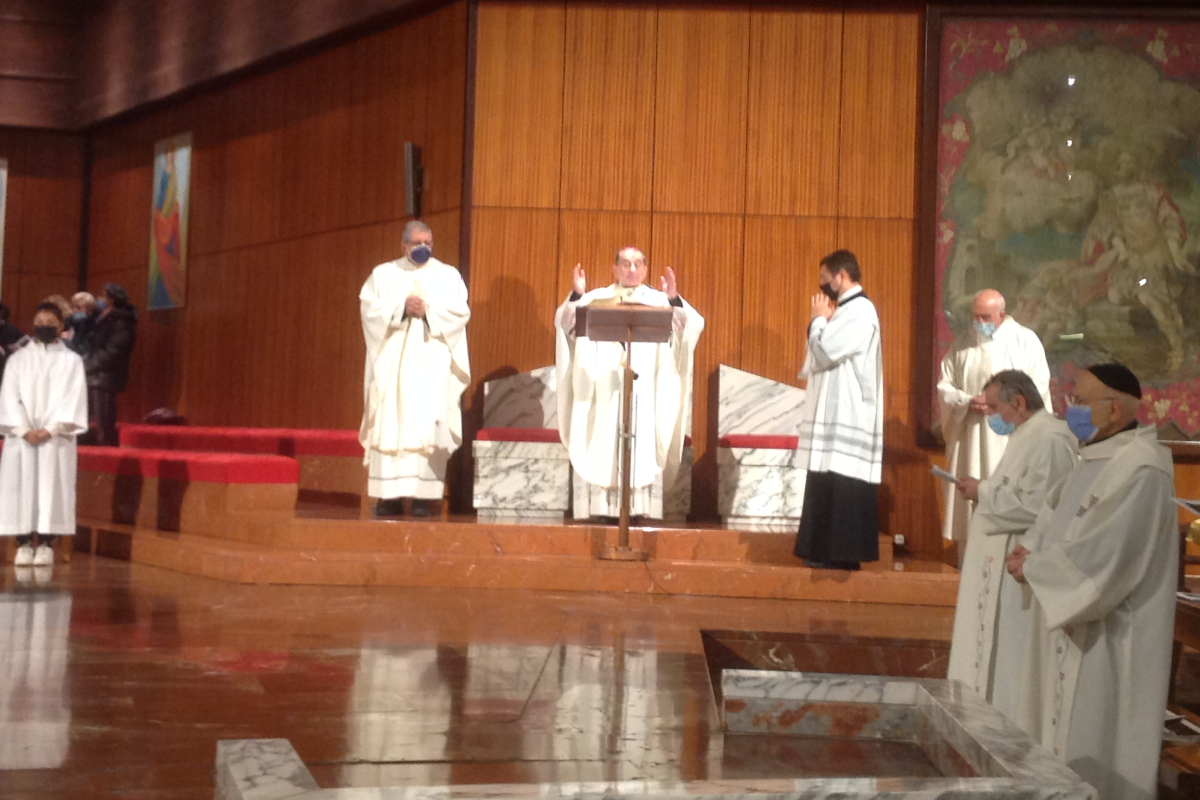 In prima fila il sindaco, Giacomo Ghilardi – a testimonianza della rilevanza anche civile della presenza dei Paolini in città – e il condirettore di Famiglia Cristiana Luciano Regolo. Presenti molte Figlie di San Paolo, collaboratori e amici.