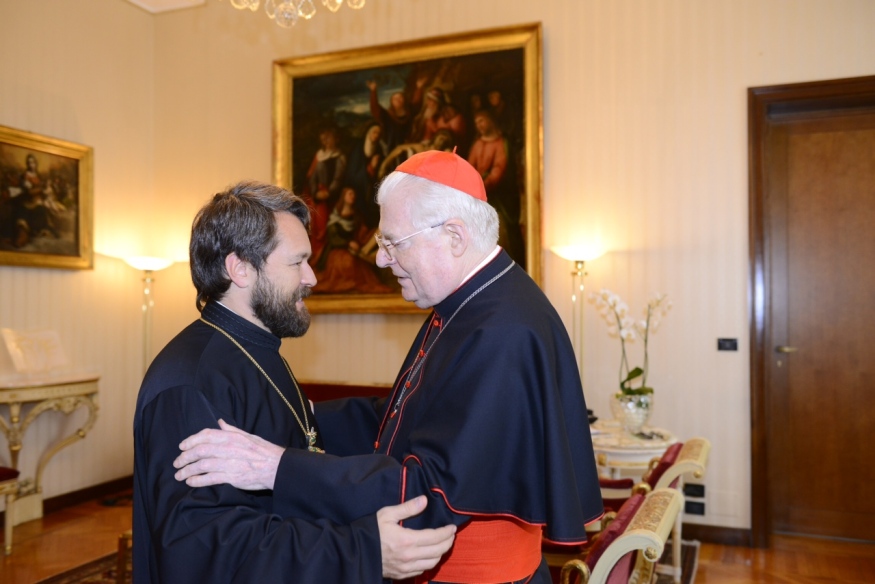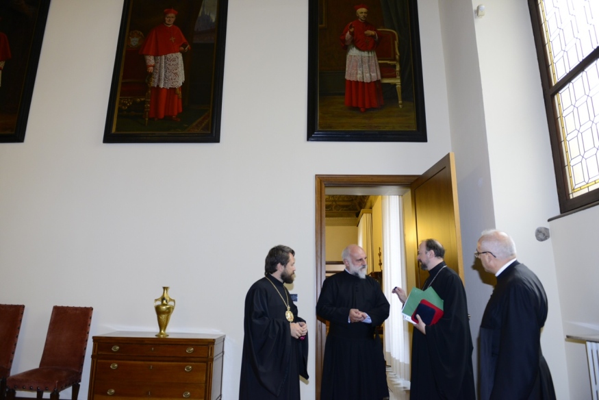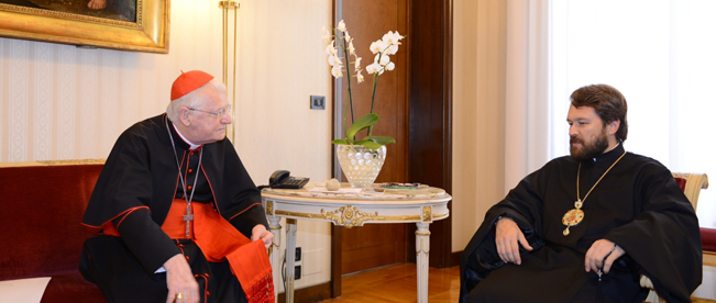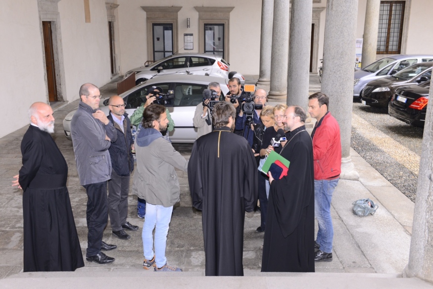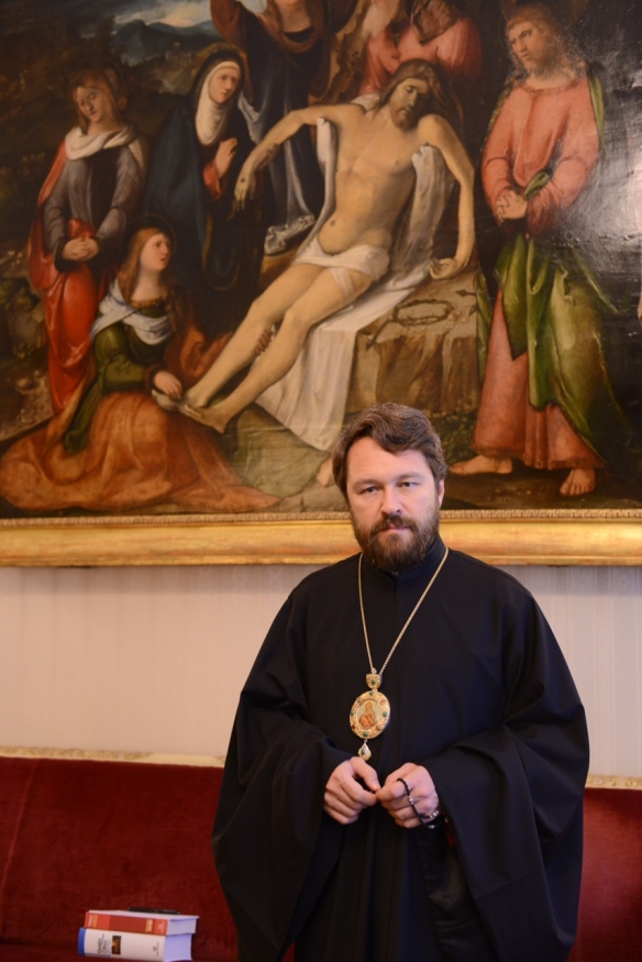 Pubblichiamo le immagini dell’incontro svoltosi nella mattinata di lunedì 14 settembre in Arcivescovado tra il cardinale Angelo Scola e il metropolita Hilarion, presidente del Dipartimento per le relazioni ecclesiastiche esterne del Patriarcato di Mosca. Nel pomeriggio il Metropolita ha visitato Expo e tenuto una “lectio” all’Ambrosiana. In serata ha assistito a un concerto in Sant’Ambrogio