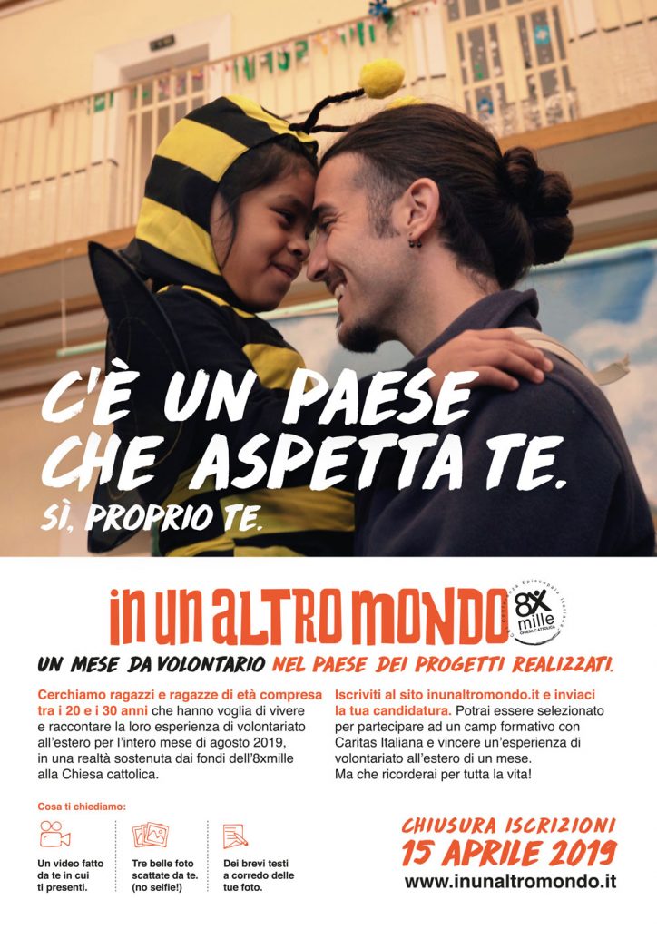 Per iscriversi al concorso basta inviare un video in cui raccontarsi; insieme ad alcune foto di reportage. Le informazioni, per partecipare, si trovano su www.inunaltromondo.it In agosto, durante l’esperienza di volontariato sul campo, si potranno vedere i reportage sui canali social.