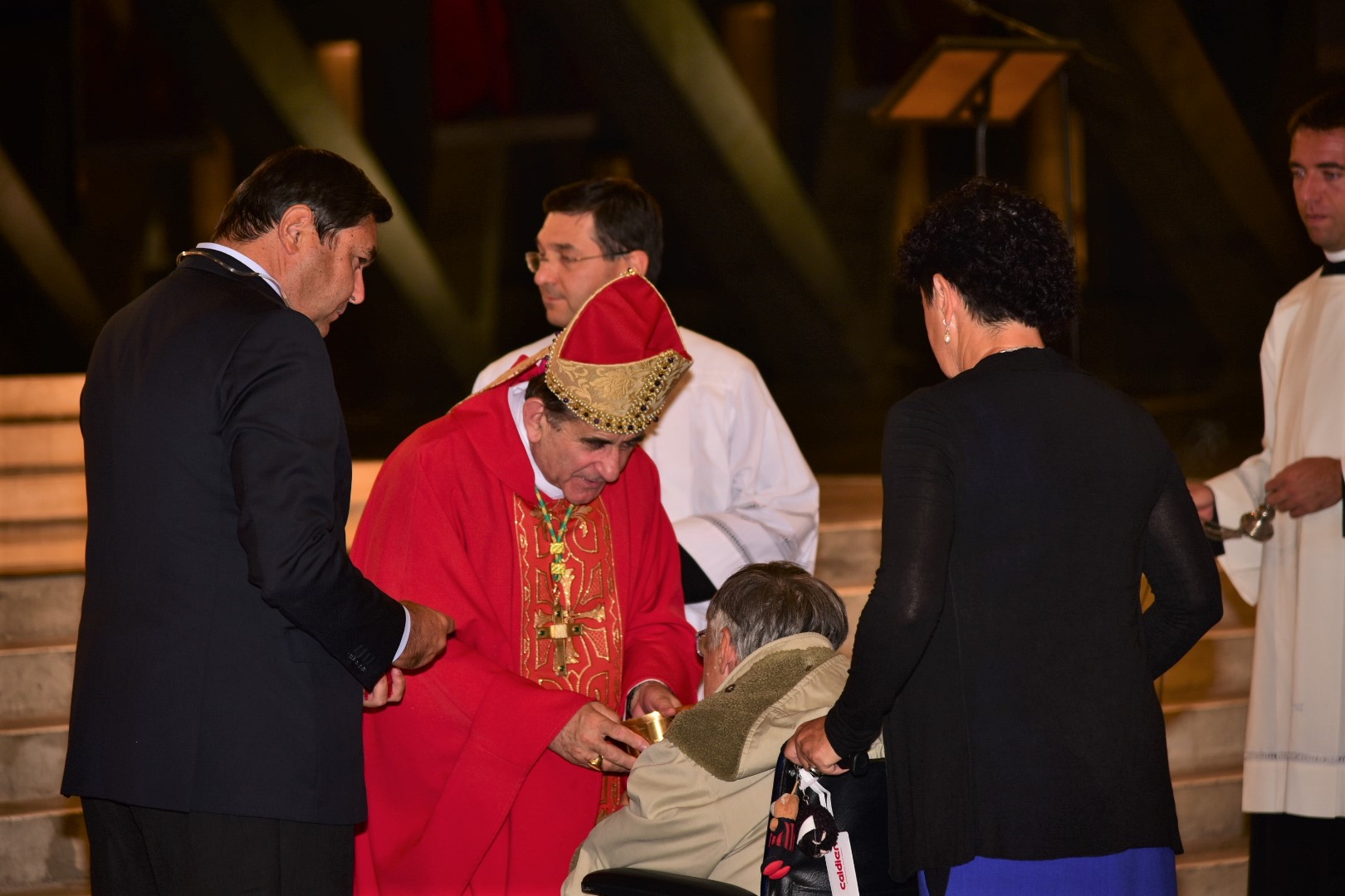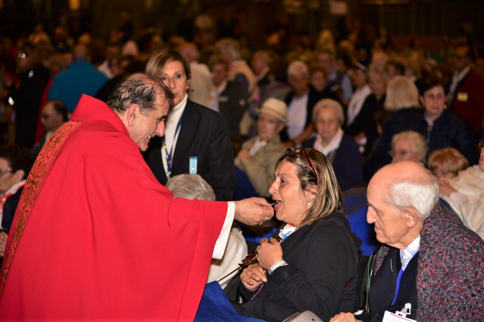 Poi, le espressioni che l’Arcivescovo scandisce con emozione, a braccio, nel silenzio più assoluto: «Alcuni di voi sono a Lourdes per accompagnare quelli che sono stupiti di essere stati aiutati ad arrivare fin qui, anche se non camminano e sono insidiati dalla malattia. Alcuni sono qui come pellegrini che portano una loro speranza o pena, un motivo di gratitudine per ciò che hanno guadagnato o di amarezza per ciò che hanno perduto. Tu che sei sano, forte vigoroso e contento, ricordati che solo il Signore ti dà la vita eterna. Tu, che sei impedito, non ti ripiegare nella tua tristezza; tu che fai del bene e che trovi gratificazione nel gesto di generosità nel volontariato, non accontentarti, ma impara a condividere la compassione di Dio che offre una consolazione che dura per sempre. Incoraggiamoci a vicenda. Siamo qui a imparare da Maria che non vale la pena di vivere per niente se non per la vita eterna».