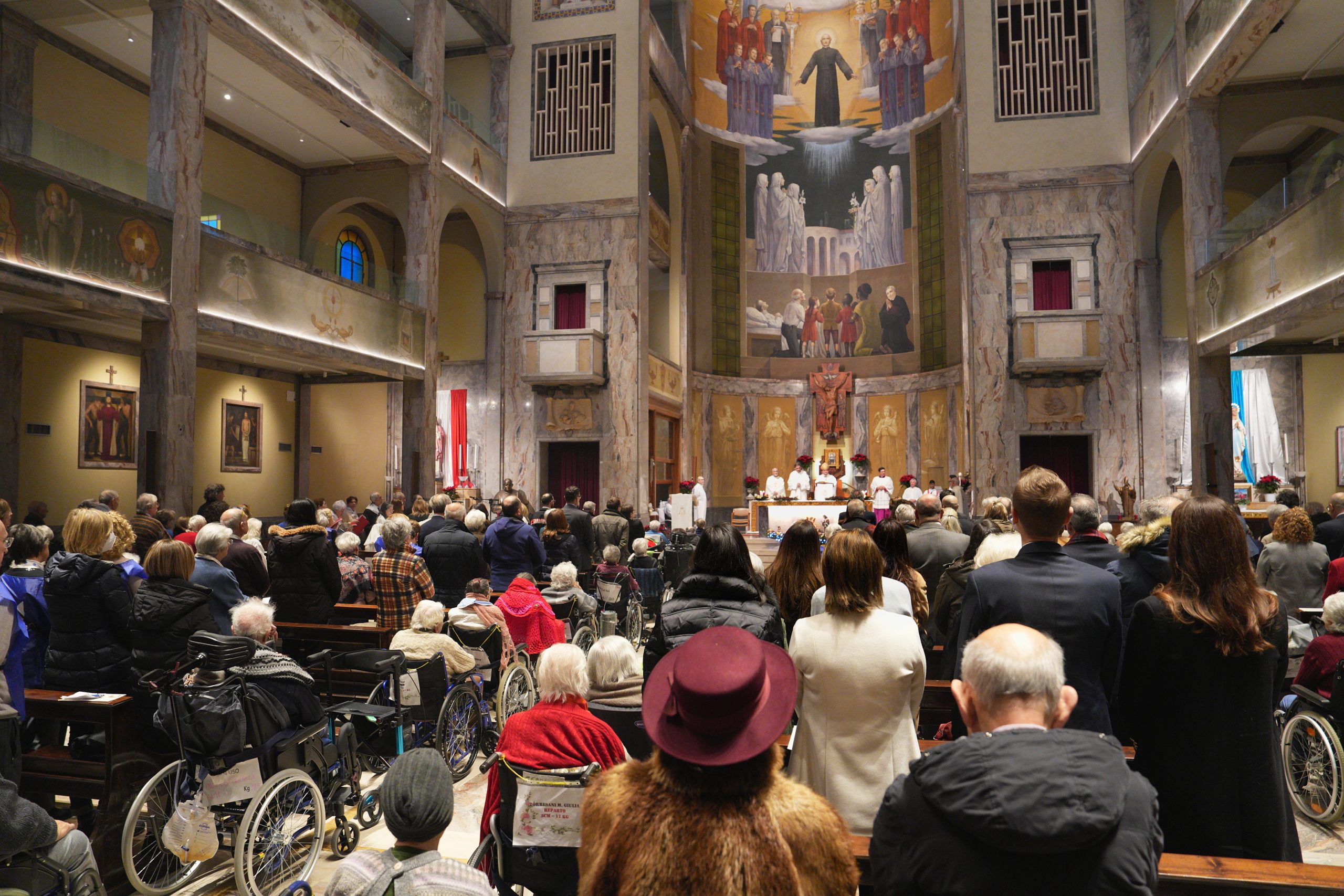 L’Arcivescovo che, per l’ottavo anno consecutivo – come tradizione dei Pastori ambrosiani nella VI di Avvento, domenica della Divina Maternità di Maria – celebra Messa nella chiesa interna all’“Istituto Luigi Palazzolo”, dice così ai tanti ospiti nelle prime file con le loro carrozzine, al personale medico e infermieristico, ai volontari e ai familiari dei degenti, agli Alpini sempre presenti, alla diaconia con le Suore delle Poverelle e le Suore della Carità. Tutti riuniti nella grande chiesa che, come ricorda nel suo saluto di benvenuto il cappellano, don Enzo Rasi, iniziata nel 1938 venne consacrata ben 16 anni dopo, nel 1954. Concelebrano il rito, don Enzo Barbante, presidente della Fondazione Don Carlo Gnocchi, (di cui il “Palazzolo” fa parte dal 1998) e uno dei sacerdoti ospiti della struttura. Non mancano il direttore generale della “Don Gnocchi”, Francesco Converti, la direttrice scientifica Cristina Messa, il direttore dell’Area Territoriale Nord, Antonio Troisi, alla guida anche dell’Istituto, la direttrice sanitaria, Federica Tartarone, rappresentanti delle altre realtà milanesi della Fondazione.