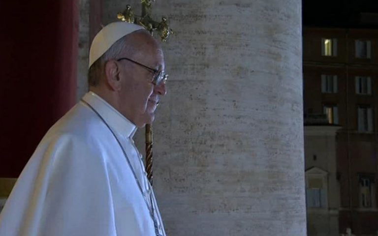 A seguire, alle 20.21, il nuovo Pontefice si è affacciato alla Loggia delle Benedizioni per salutare la moltitudine di folla accorsa in San Pietro e per rivolgere ai fedeli in piazza e a quelli collegati da casa attraverso la televisione, la radio e il web la sua prima benedizione Urbi et Orbi.