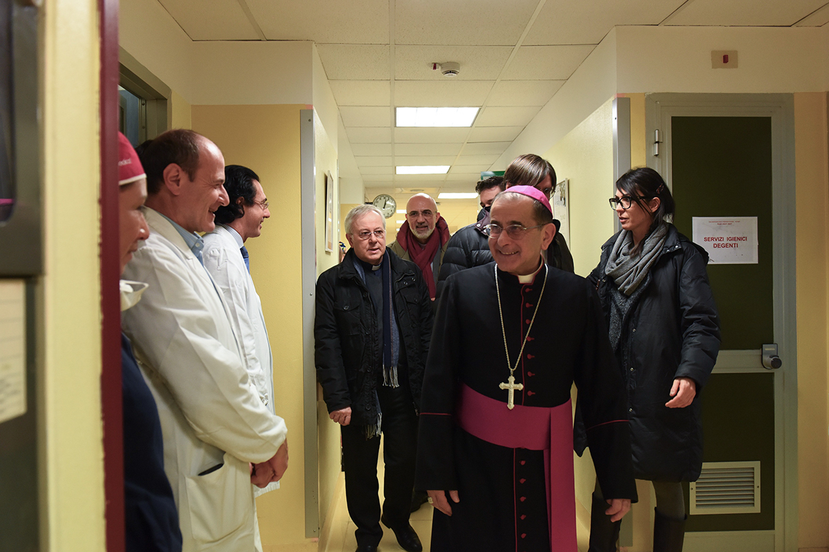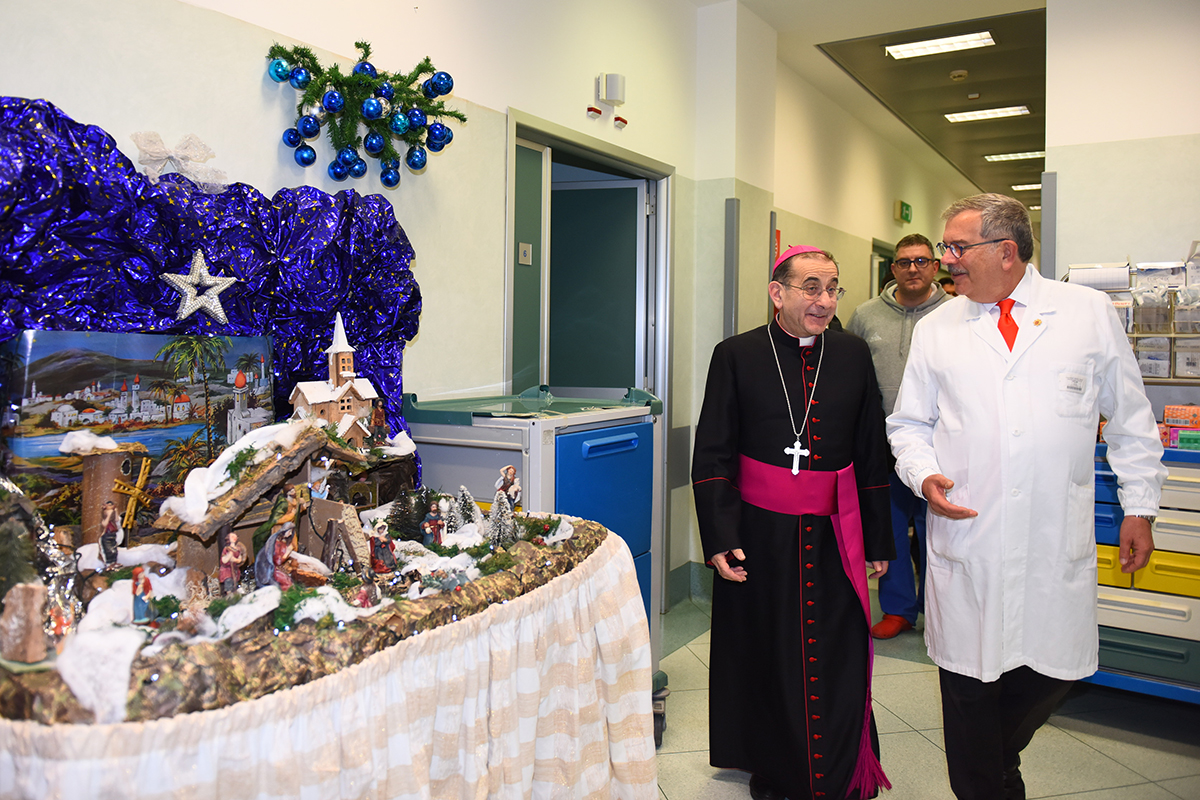 Come ormai tradizione, nei giorni immediatamente precedenti al Natale e per ricordare la Solennità dei Santi Innocenti Martiri (28 dicembre), l’Arcivescovo visita la Fondazione Ca’ Granda Ospedale Maggiore Policlinico, Irccs di cui fa parte la Clinica Mangiagalli. Accolto e accompagnato dai Cappellani, dal presidente della Fondazione Marco Giachetti, da medici e personale, si reca in alcuni reparti, intrattenendosi al Padiglione Litta della Dialisi, al “Cesarina Riva” (urologia e trapianti), al “Croff” (nefrologia e trapianti) e, infine, alla Clinica De Marchi, presso le camere della dialisi pediatrica: 940 i posti-letto, in totale, del Policlicnico, un terzo dei quali è destinato ai reparti materni-infantili.