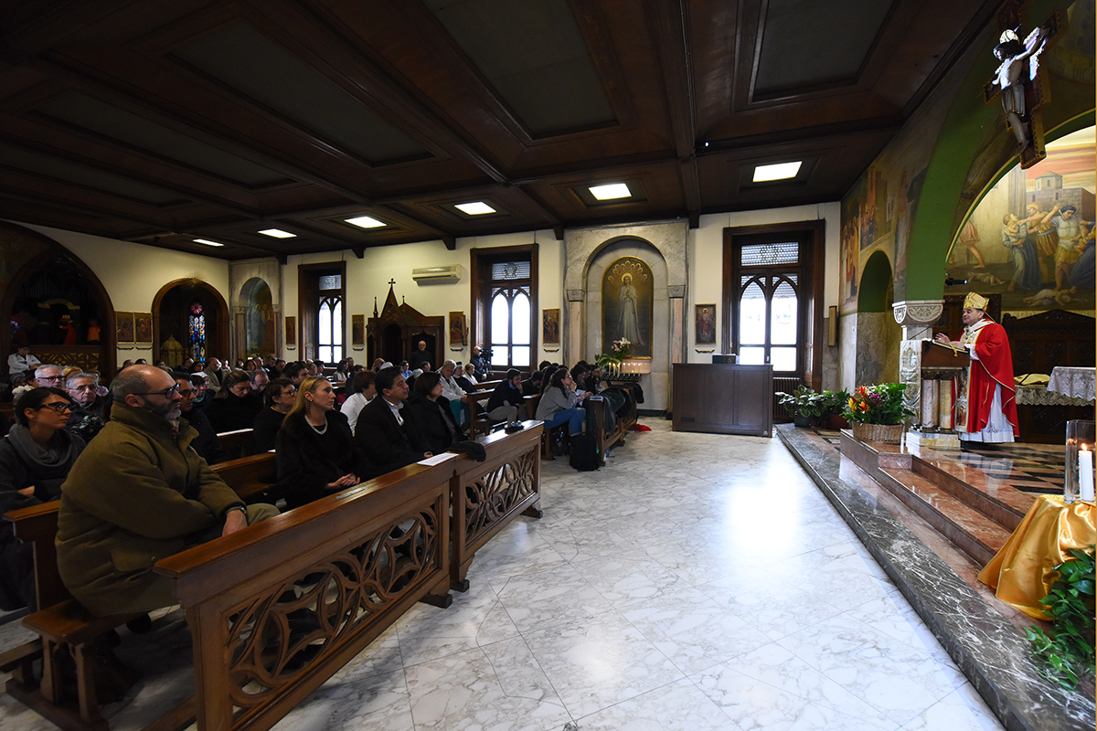 Poi, nella chiesa interna alla struttura – intitolata appunto ai Santi Innocenti -, presiede la celebrazione eucaristica, concelebrata dai cappellani don Giuseppe Scalvini, don Norberto Gamba, don Marco Gianola (che risiede stabilmente alla Mangiagalli, dove nasce un bimbo circa ogni ora, ogni giorno dell’anno) e don Paolo Fontana, responsabile del Servizio diocesano per la Pastorale della Salute. «Lei è sempre a casa sua in Diocesi, ma, qui, nella sua parrocchia, è ancora più “a casa”», lo saluta don Scalvini, alludendo al fatto che gli Arcivescovi di Milano sono i parroci della chiesa di Santa Maria Annunciata, la parrocchia della Ca’ Granda.