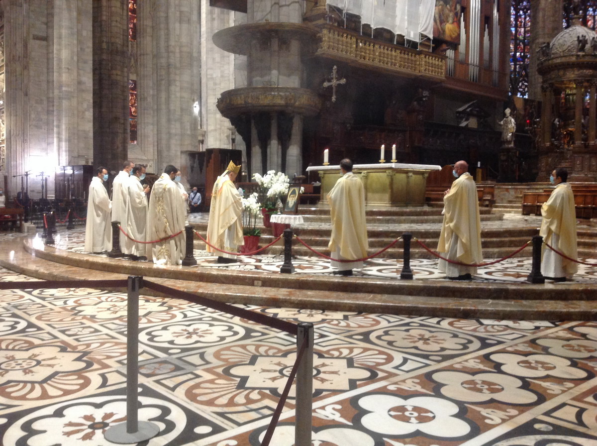 Dopo la lettura del Vangelo di Luca al capitolo 18 – propria della Messa votiva per i santi monaci, secondo il nuovo Lezionario ambrosiano – monsignor De Scalzi avvia la sua omelia.