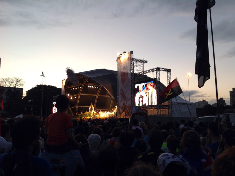 In tarda mattinata ci siamo spostati alla Casa del Migrante dove, da circa un secolo, i Padri Scalabriniani gestiscono l´emergenza migrante, dagli italiani agli haitiani vittime del terremoto. Una pioggia torrenziale ha interrotto la visita alla favela, visita che rimarrá comunque uno dei momenti piú toccanti della GMG.
