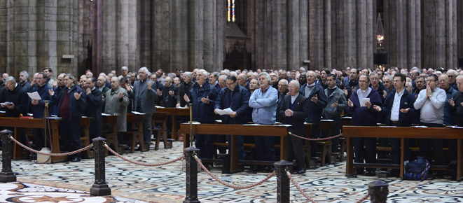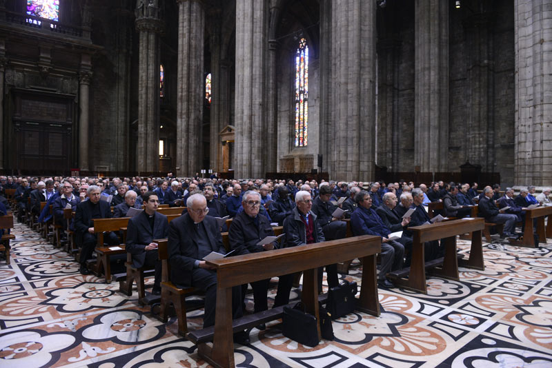 Al clero ambrosiano riunito in Duomo per conoscere le nuove linee-guida dei “cantieri” diocesani (liturgia, Comunità pastorali, iniziazione cristiana e inserimento nel ministero dei preti novelli) l’Arcivescovo ha annunciato il tema della Lettera pastorale 2013-2014