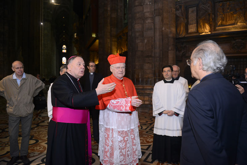 Al termine dell’incontro, mentre il cardinale Scola si è intrattenuto nelle navate del Duomo a salutare i sacerdoti e si è raccolto in preghiera sulla tomba del cardinale Martini, i parroci presenti hanno ricevuto in dono una formella commemorativa del 1700° anniversario dell’Editto di Milano, donata dalla rivista di architettura Chiesa oggi.