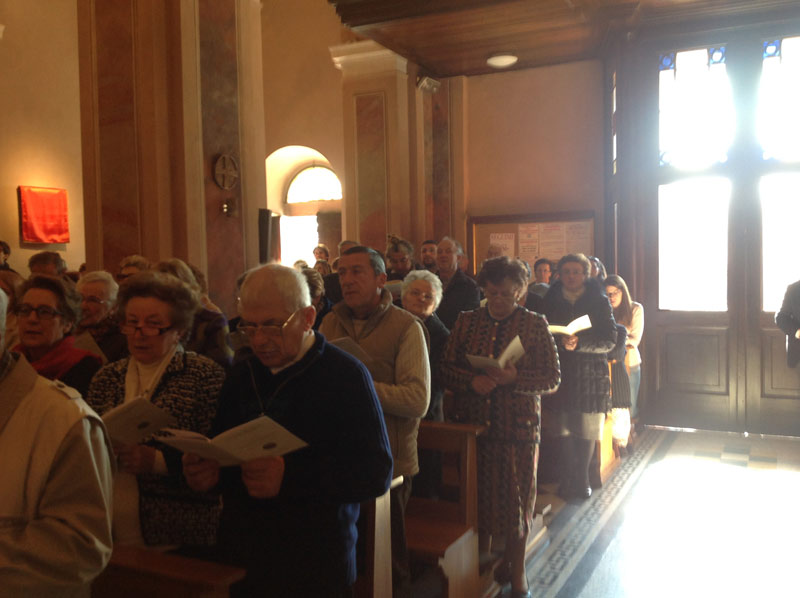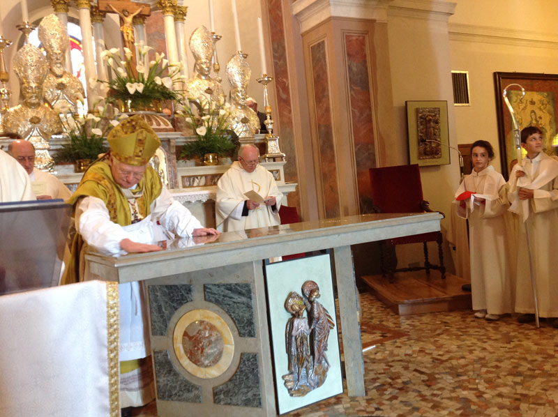 Sotto un bel sole primaverile, l’Arcivescovo, infatti, arriva in questo angolo incantevole tra l’azzurro del lago di Varese e il verde della campagna collinosa, per dedicare la chiesa San Carlo Borromeo. Tempio antico, edificato nel 1590, a soli sei anni di distanza dalla morte del Vescovo patrono e che – per un’inadempienza lunga oltre quattrocento anni, come ci si accorse nel 2004 – non era stata ancora dedicata ufficialmente. E, allora, tutto il paese, che conta poco più di ottocento abitanti, mobilitato da giorni per l’occasione, si dà appuntamento in chiesa: ci sono il sindaco, Massimo Nicora, le autorità, il decano del Decanato di Azzate, don Angelo Cavalieri, i sacerdoti che concelebrano, chi perché nativo, chi perché qui ha svolto il suo ministero. Dopo il saluto del responsabile della Comunità pastorale di Daverio, di cui fa parte Cazzago, don Angelo Castiglioni, il Cardinale asperge, secondo il rito, il popolo con l’acqua benedetta. «Esprimo tutta la mia gioia di essere qui, in questa storica chiesa, per compiere una celebrazione unica nel suo genere», dice in apertura dell’omelia.