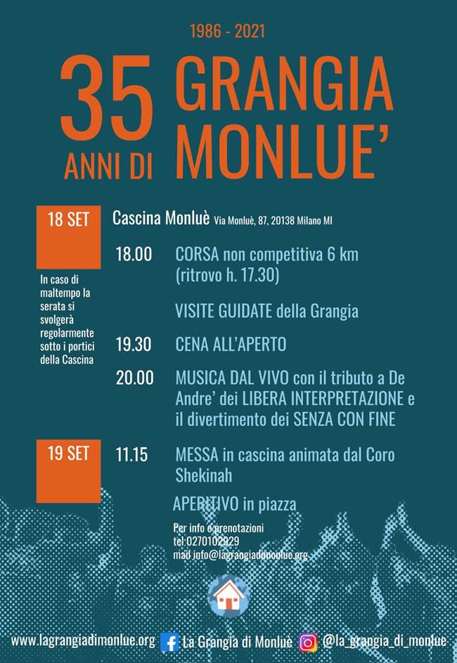 Tre giorni di festa alla Grangia di Monluè per i suoi 35 anni di attività accanto agli stranieri, in particolare i richiedenti asilo scappati dai loro Paesi per salvarsi e rifarsi una vita. Si inizia sabato 11 settembre con una tavola rotonda a cui partecipano l’arcivescovo Mario Delpini e il sociologo Maurizio Ambrosini. «A questo appuntamento – spiega don Bortolo Uberti, presidente dell’associazione onlus, nonché parroco di San Lorenzo in Monluè e San Nicolao della Flue – sono invitati in particolare volontari e operatori (di ieri e di oggi), abitanti del quartiere e tutti coloro che desiderano riflettere sul fenomeno dell’immigrazione e sulle sue prospettive». Al dibattito interverrà anche un ospite che porterà la sua testimonianza, quindi seguirà il confronto con i presenti.