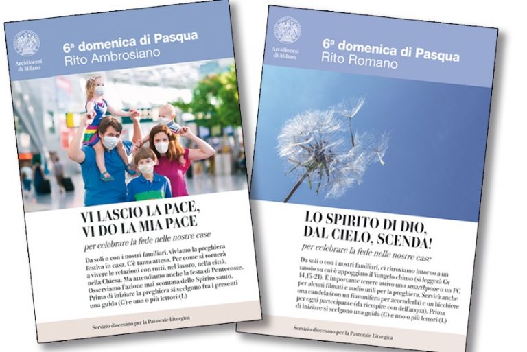 Pubblichiamo il sussidio di preghiera curato dal Servizio diocesano per la Liturgia, per celebrare la fede nelle nostre case nella VI domenica di Pasqua (17 maggio), predisposto in due versioni: una per il rito ambrosiano («Vi lascio la pace, vi do la mia pace») e una per il rito romano («Lo spirito di Dio, dal cielo, scenda!»).