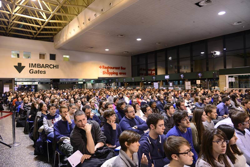 È qui che nasce quella “relazione costitutiva”, che è il filo rosso che annoda tutto il dialogo, e, per così dire, scioglie i “nodi” creati dall’altrofilo che continua a emergere dalle parole dei ragazzi: l’incertezza, il timore del domani, la paura di non capire a pieno quello che Pavese definiva il «mestiere di vivere». Mestiere che deve diventare, invece, arte dell’esistenza, pare suggerire l’Arcivescovo quando, riflettendo sul significato di ritrovarsi in un aeroporto, richiama il simbolo del viaggio. Itinerario che, nel suo breve intervento, monsignor Pierantonio Tremolada, vicario episcopale per la Pastorale giovanile, definisce «emblema della vita che è movimento e continuo cambiamento».