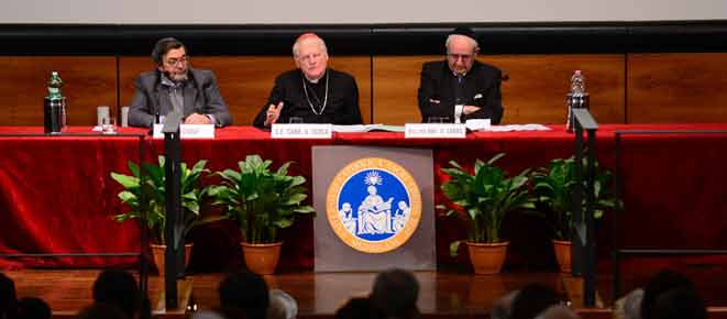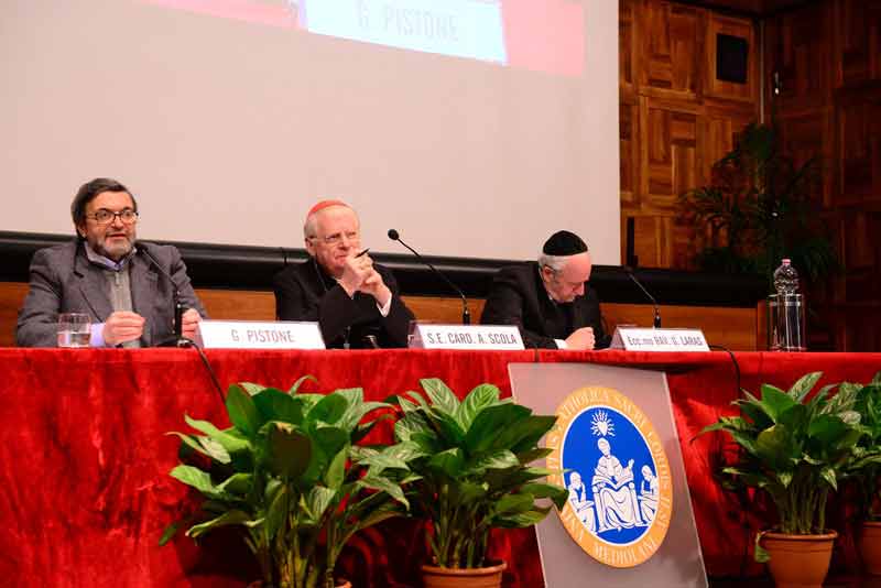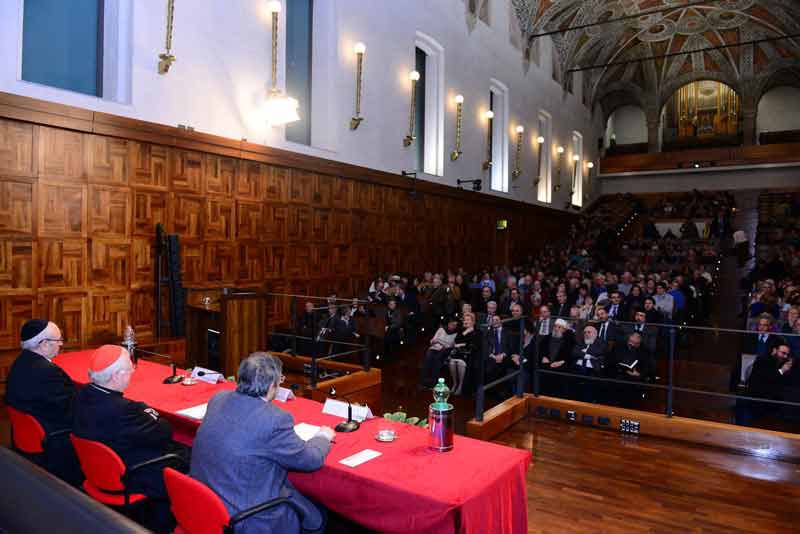 All’Università Cattolica la “lectio magistralis” a due voci tra il cardinale Angelo Scola e il rabbino Giuseppe Laras, primo confronto pubblico tra loro, promosso dalla Fondazione San Fedele e dalla Fondazione Maimonide
