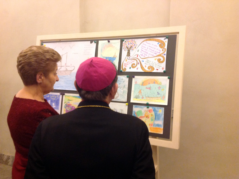 Più volte, nella serata, monsignor Delpini torna a osservare, incantato, i disegni: una parte dei tantissimi che padre Antonio Spadaro, direttore della rivista dei gesuiti italiani La Civiltà Cattolica, ha ricevuto da papa Francesco per conservarli presso la sede della pubblicazione. «Li ho visti una volta nella residenza di Santa Marta e ho chiesto al Santo Padre cosa ne avrebbe fatto – ricorda padre Spadaro -. Lui mi ha detto: “Prenditene cura”. Continuano ad arrivare, non so nemmeno ormai quanti ne abbiamo, ma li conserviamo tutti perché il Papa sente che devono servire per altri bambini».
