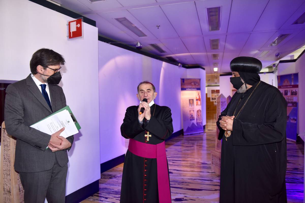 «La storia dei monumenti, dei grandi edifici, scrive la storia del potere, La storia scritta con i libri e i papiri che sfidano i secoli, la storia dei Padri della Chiesa, è quella che esprime il dialogo con la cultura di cui l’Egitto, nei millenni, è un esempio straordinario. Ma, poi, c’è la storia che si scrive anche con il sangue, con la celebrazione delle sante liturgie, con la carità e questa racconta la storia dei popoli, fatta per essere cantata perché dà speranza alla vita della gente, perché parla con la carità e la responsabilità che induce a stare attenti agli altri. E, infine, c’è la storia che si scrive con il sangue dei martiri, come quella illustrata da questa mostra».