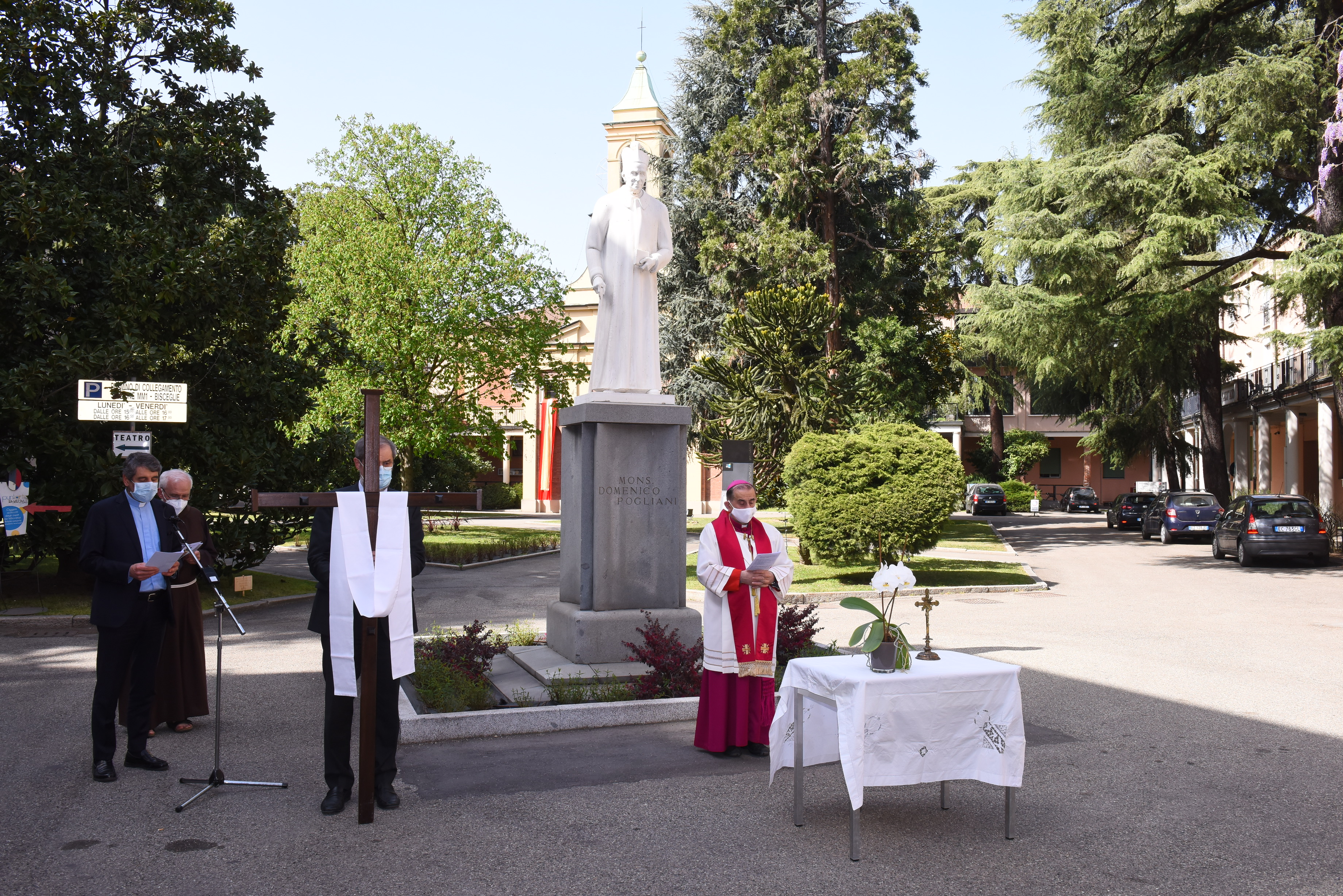 Il rito si è svolto lungo un percorso di otto stazioni, all’interno della sede, ma passando all’esterno delle residenze per i disabili e per gli anziani, e sostando per un momento di preghiera, dando così modo agli ospiti di affacciarsi e di assistere. Anche gli operatori della Fondazione sono stati coinvolti nella lettura di una parte del testo della Via Crucis.
